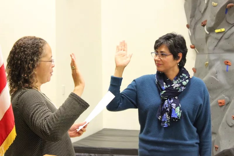 Boardmember Lisa Flores is sworn into office after the 2015 elections.