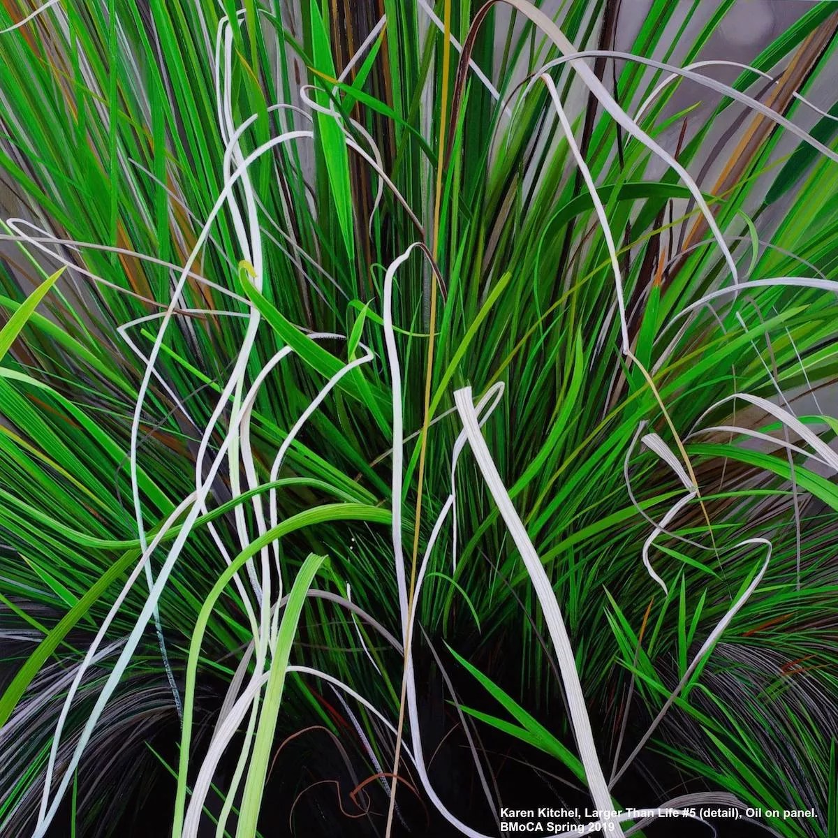 Colorado artist Don Coen branched off from his work depicting farm and ranch life in the West almost two decades ago to look at a flip side of agricultural culture: the migrant workers out in the fields, who harvest the crops that feed the rest of America. The resulting Migrant Series, Coen’s ongoing project of making large-scale portraits rendered in airbrushed layers over blown-up photographs, directly portrays real people, bathed in sunlight and the bright colors of the farmworker’s landscape – and it couldn’t be more current. Kitchell, on the other hand, does similar studies, but with grasses as her subject, in environmentally directed oils that tell the hidden stories of disappearing prairie lands.