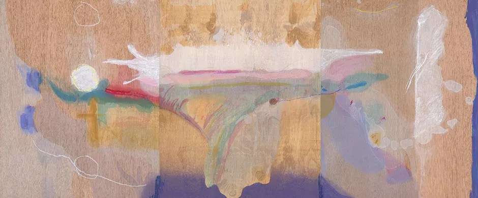 Fawn Atencio uses printmaking techniques to give depth to her abstract paintings.