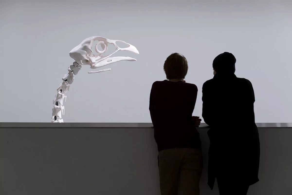 Black Cube rolls out another piece of the Monumental installation project with the debut of German artist Andreas Greiner’s “Monument for the 308,” a giant dinosaur-like skeleton sculpture that’s actually based on a common type of broiler chicken bio-designed for human consumption. Birds, after all, are descended from dinos, right?