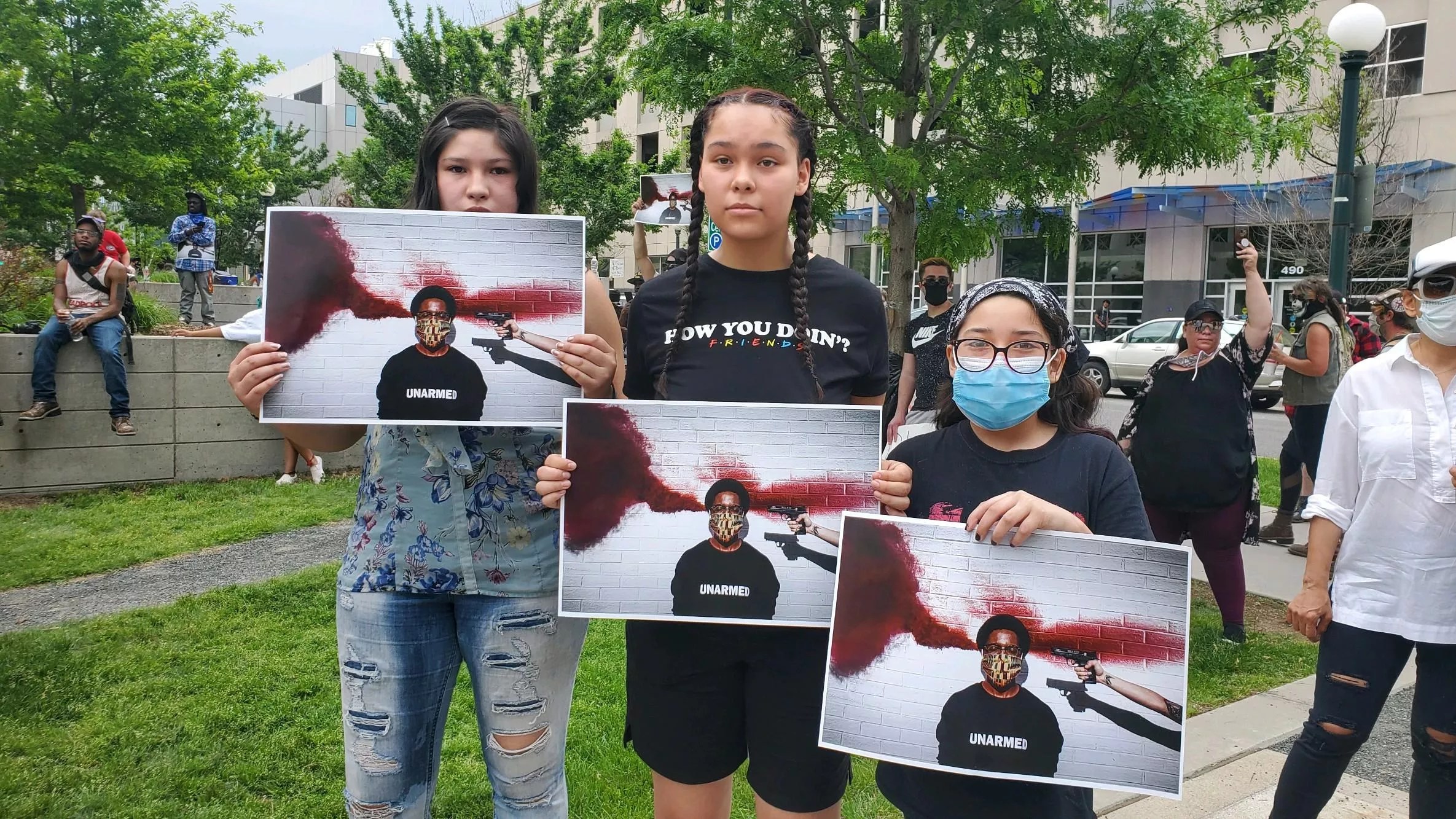 As protests started gripping downtown Denver last week, Matthews began printing out the image on posters and handing them out. Now you can spot the image at every rally in Denver, day or night. “They’ve all wanted to carry it around. They’ve all wanted to show love for it,” Matthews says.