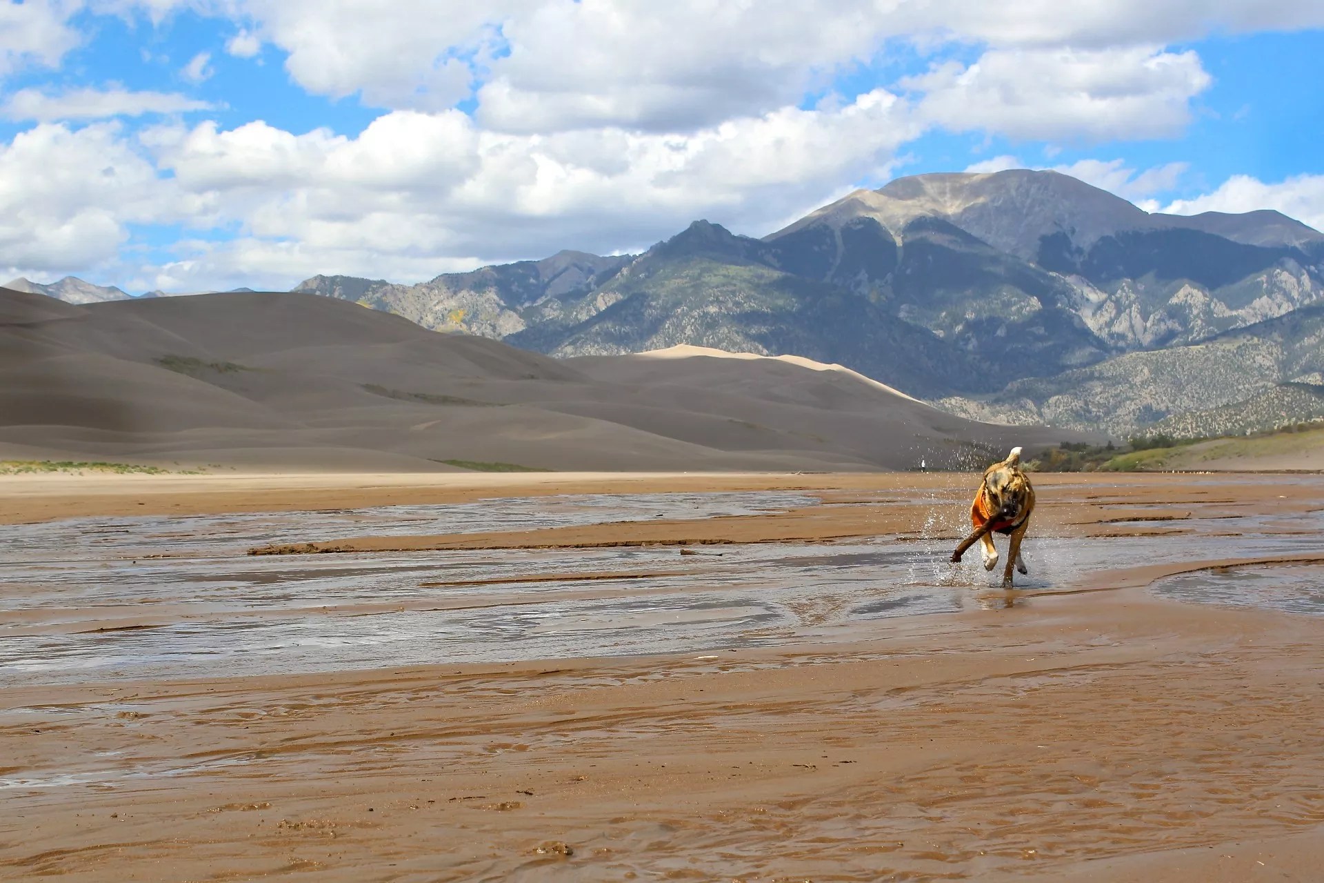 Late season at Medano Creek, one of few Colorado mountain beaches that permit dogs.
