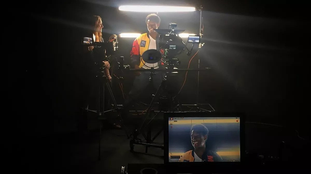 Toninelo on the set with Rocket House Productions partner Travis Volz.
