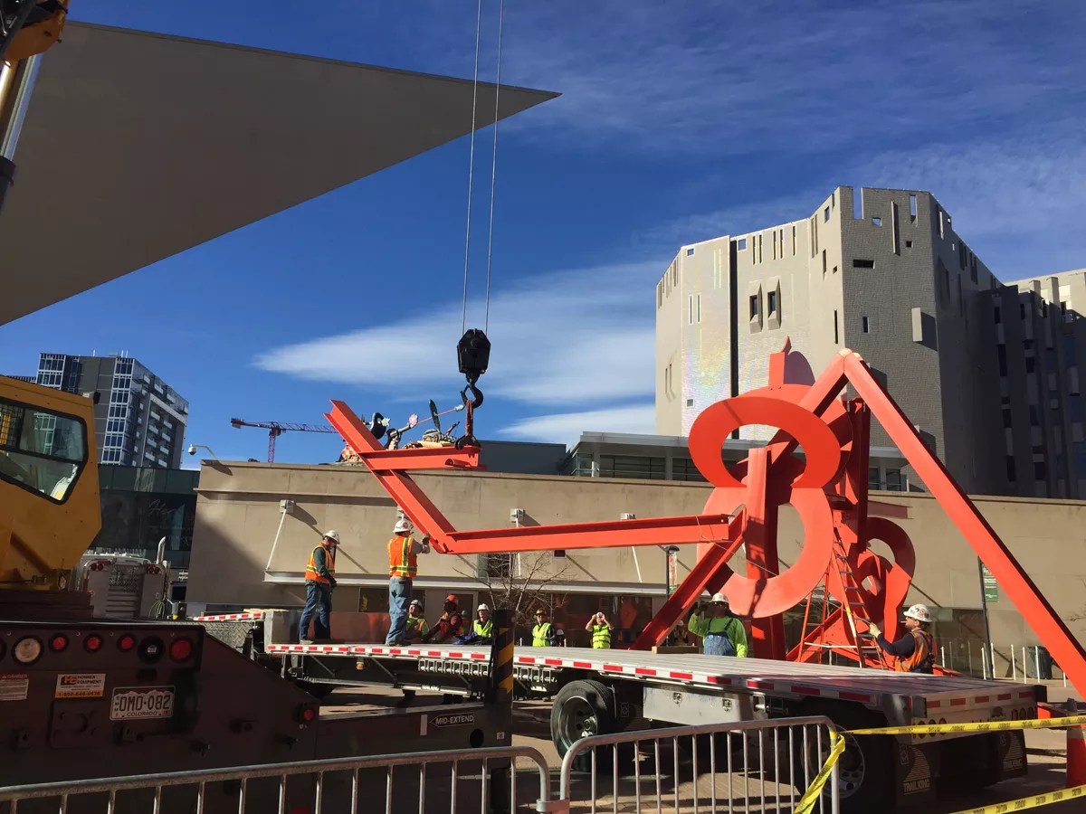 The most emphatic evidence of the coming changes at the DAM was the removal last week of the monumental sculpture “Lao Tzu,” by Mark di Suvero, which was consigned to storage after being lifted in pieces from the spot on Acoma Plaza that it had occupied since 1996. (I was there when it was originally installed and got to meet di Suvero, who oversaw the installation from a bucket lift.) “Lao Tzu” is a tangle of steel beams painted hazard orange, and I consider it the most significant piece of public sculpture in Denver. It’s obviously well regarded by the public at large, too, since it was used to symbolize the museum in a recent TV ad campaign promoting the city’s GO bonds. When construction is completed, the piece will be reinstalled on the plaza, though it might move a foot or two toward the Denver Public Library. (The DAM’s Hamilton Building, of course, will remain open through the project, with extended hours.)