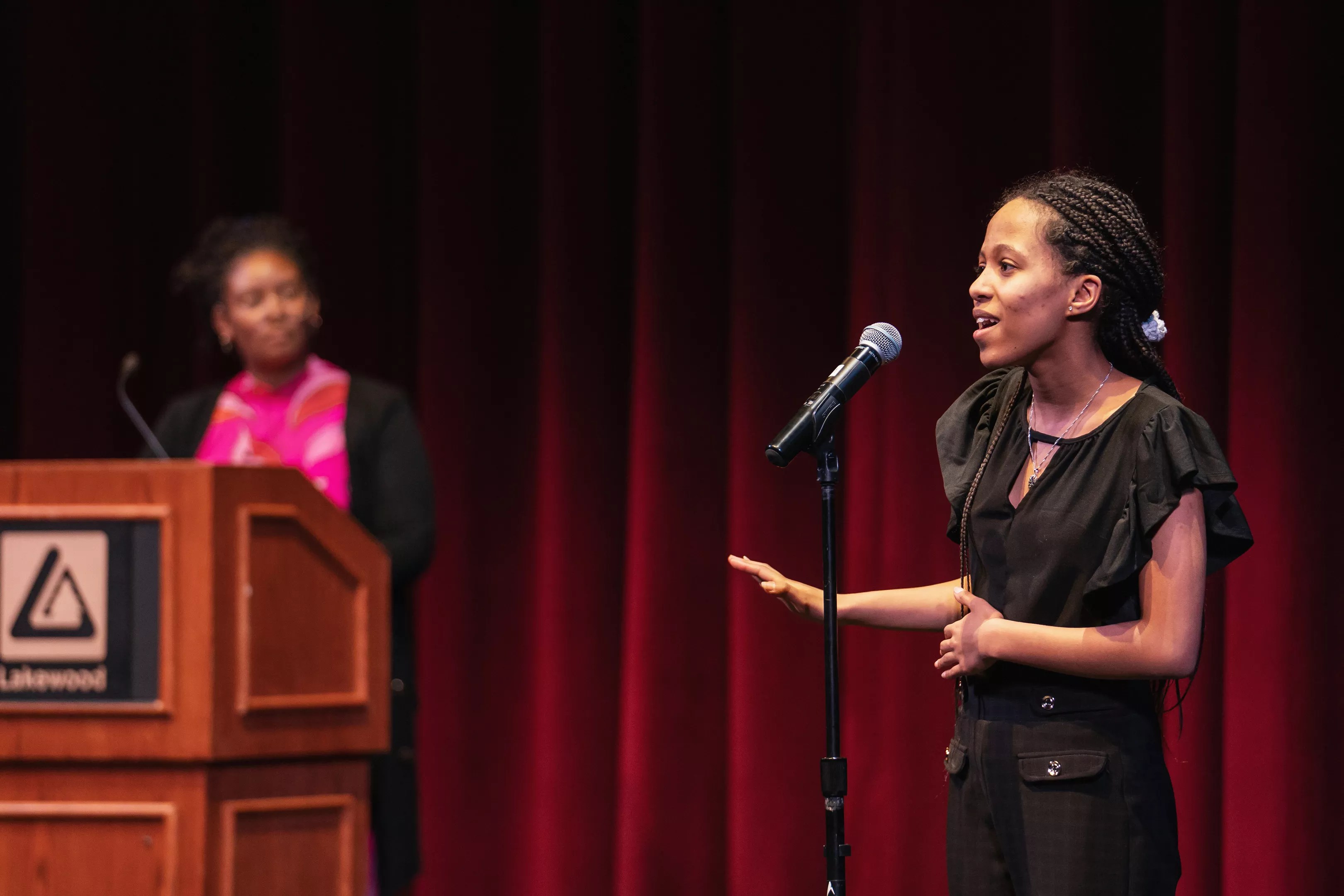 Surprisingly, this year was Kebede’s first time competing. “I first got interested in the Poetry Out Loud competition through my speech and debate coach,” she says. “I had been looking for different ways to just go out, get out of my comfort zone and just experiment with public speaking, because I wanted to gain leadership skills I didn’t have before.” Kebede says she was “super shy” the previous school year, but pushed herself to develop public speaking skills through extracurriculars.
