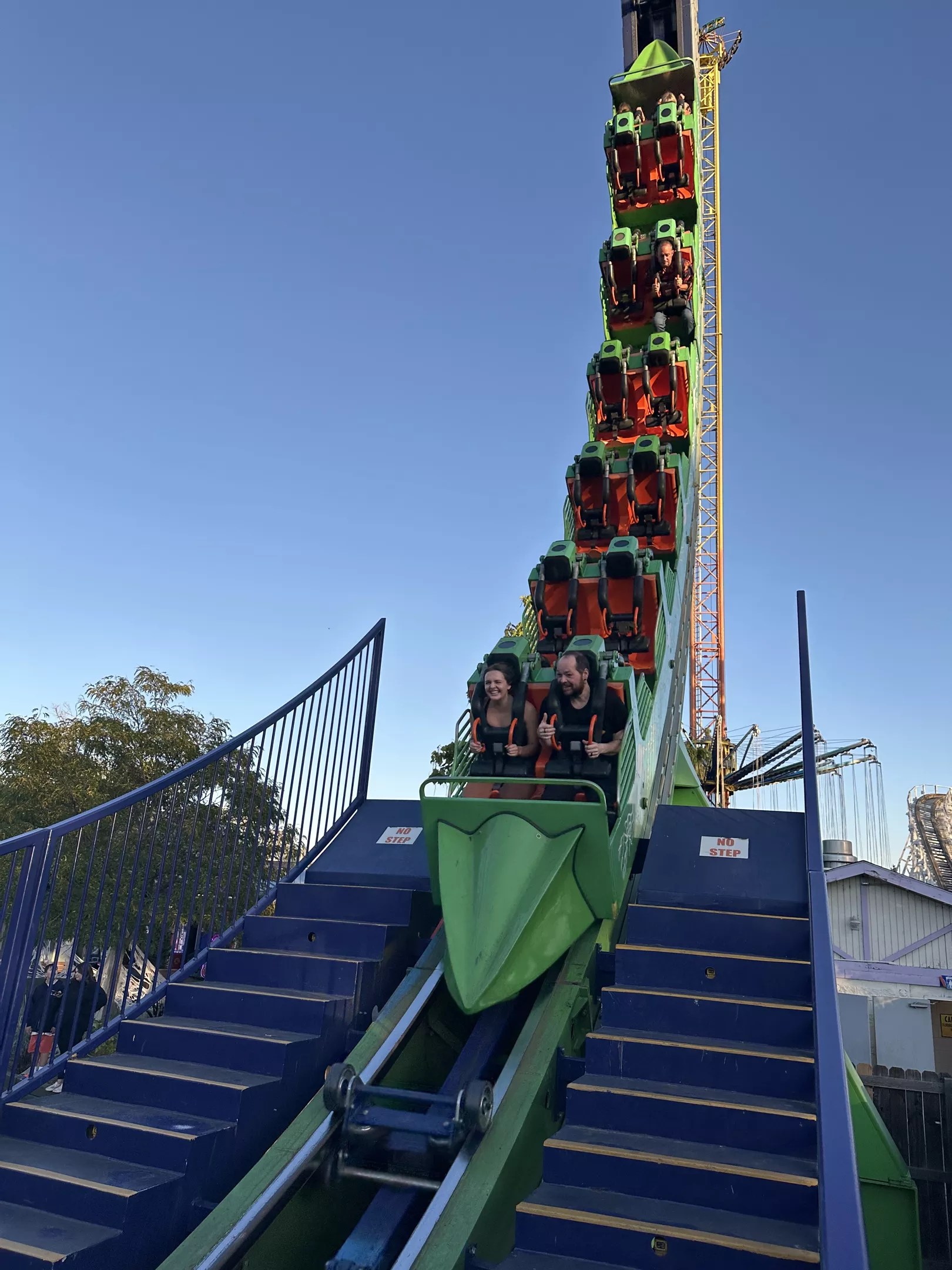 We also got to ride the XLR8R late at night, which pulled us 150 feet into the air in a harness before dropping us in a free-fall over the ground. The attraction, which typically costs visitors extra to ride, is the largest free-fall swing in the state.