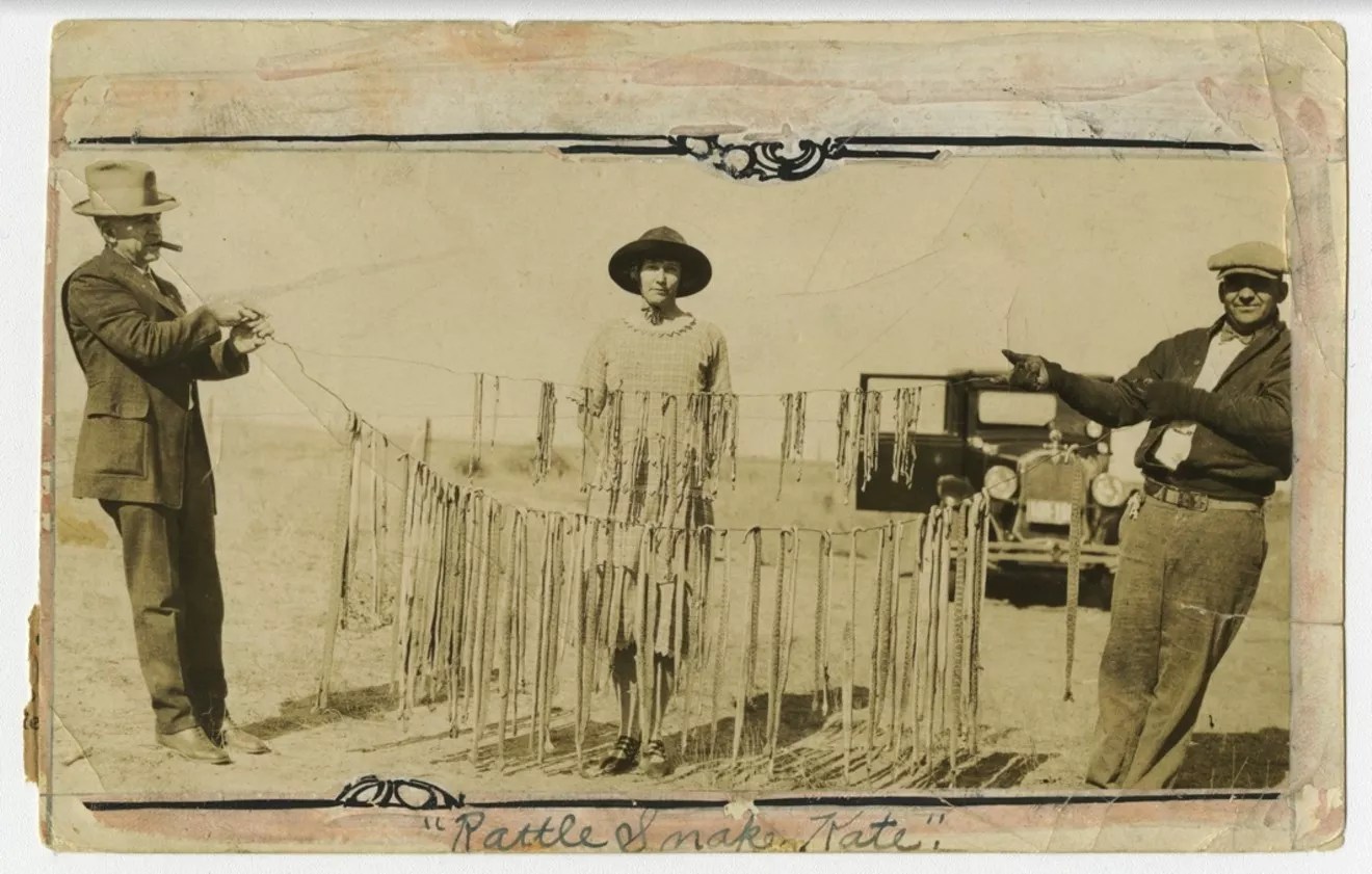 She also went on to raise rattlesnakes on her property, extracting their venom for profit and making and selling snakeskin souvenirs.