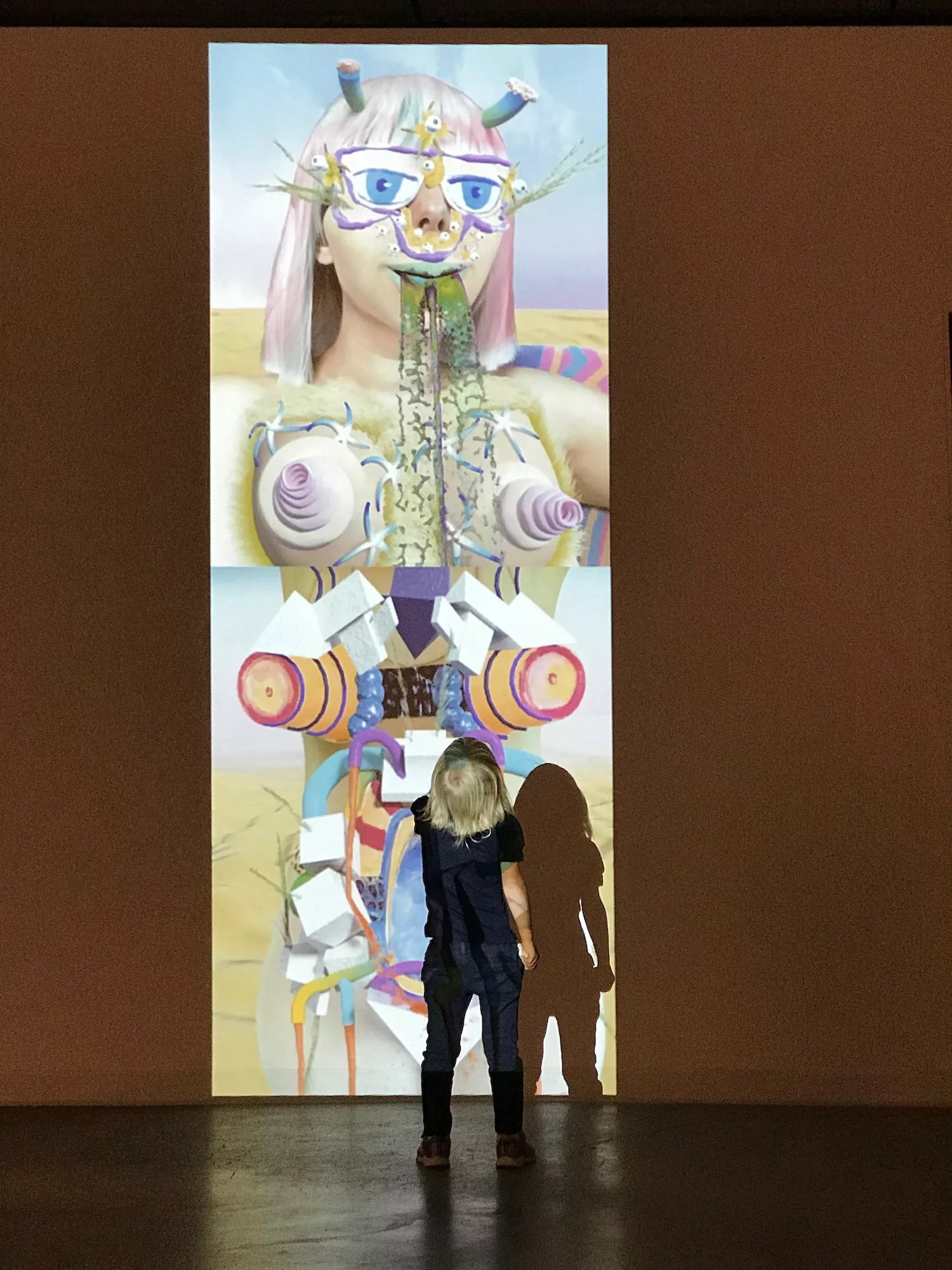 A young visitor at RedLine’s Supernova exhibition peruses a video installation by Katie Torn.