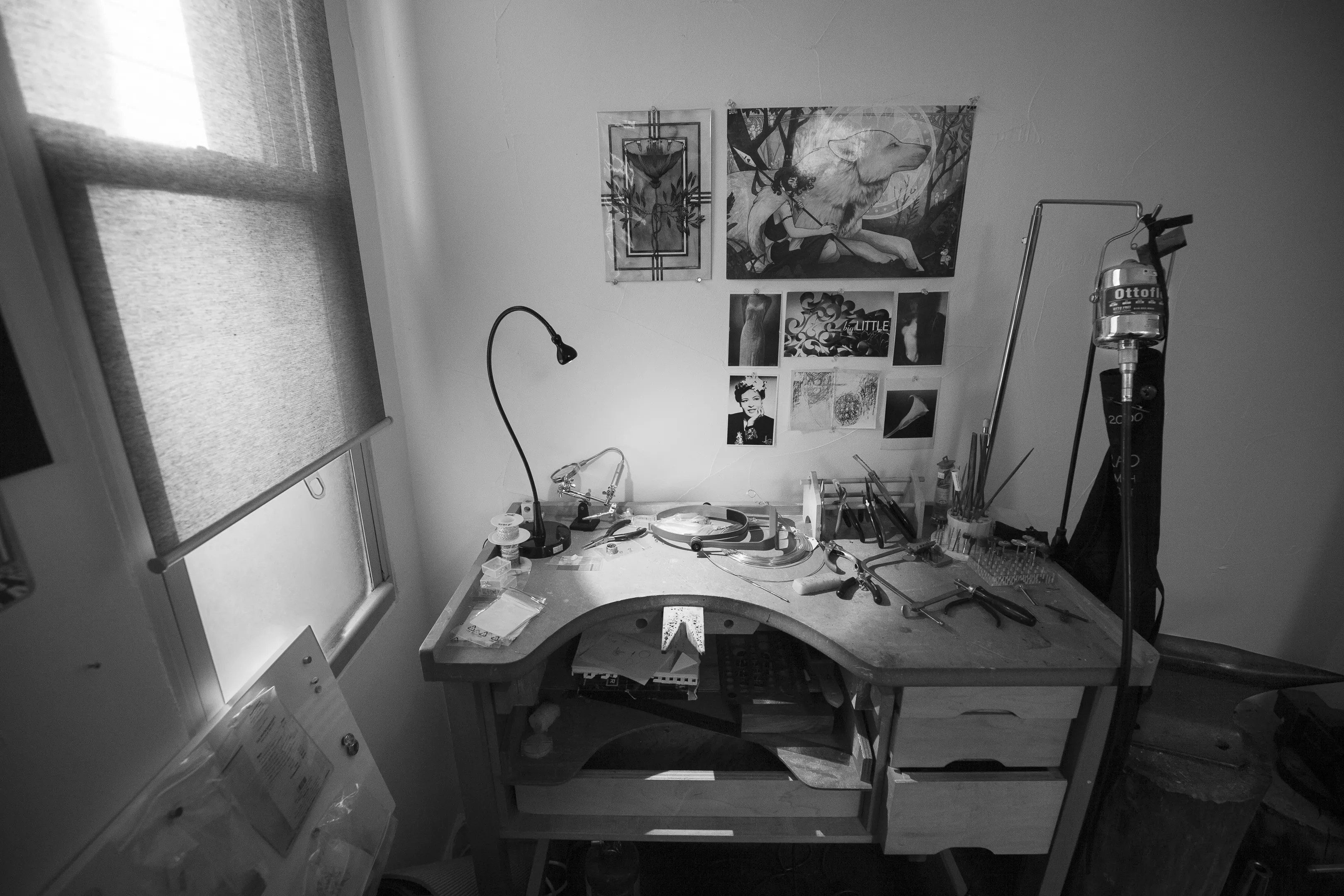 When I am creating to add my own inventory of jewelry to the store, I am inspired by just sitting down at my bench and letting the materials speak to me about the story they want to tell. My formal training as a metalsmith was much more regimented and focused on a more formal design process. That meant doing sketches, then refining, then creating, etc. It’s only recently that I have really connected to the concept of spontaneous creation, and that has meant embracing the act of listening and improvisation over planning and procedure.