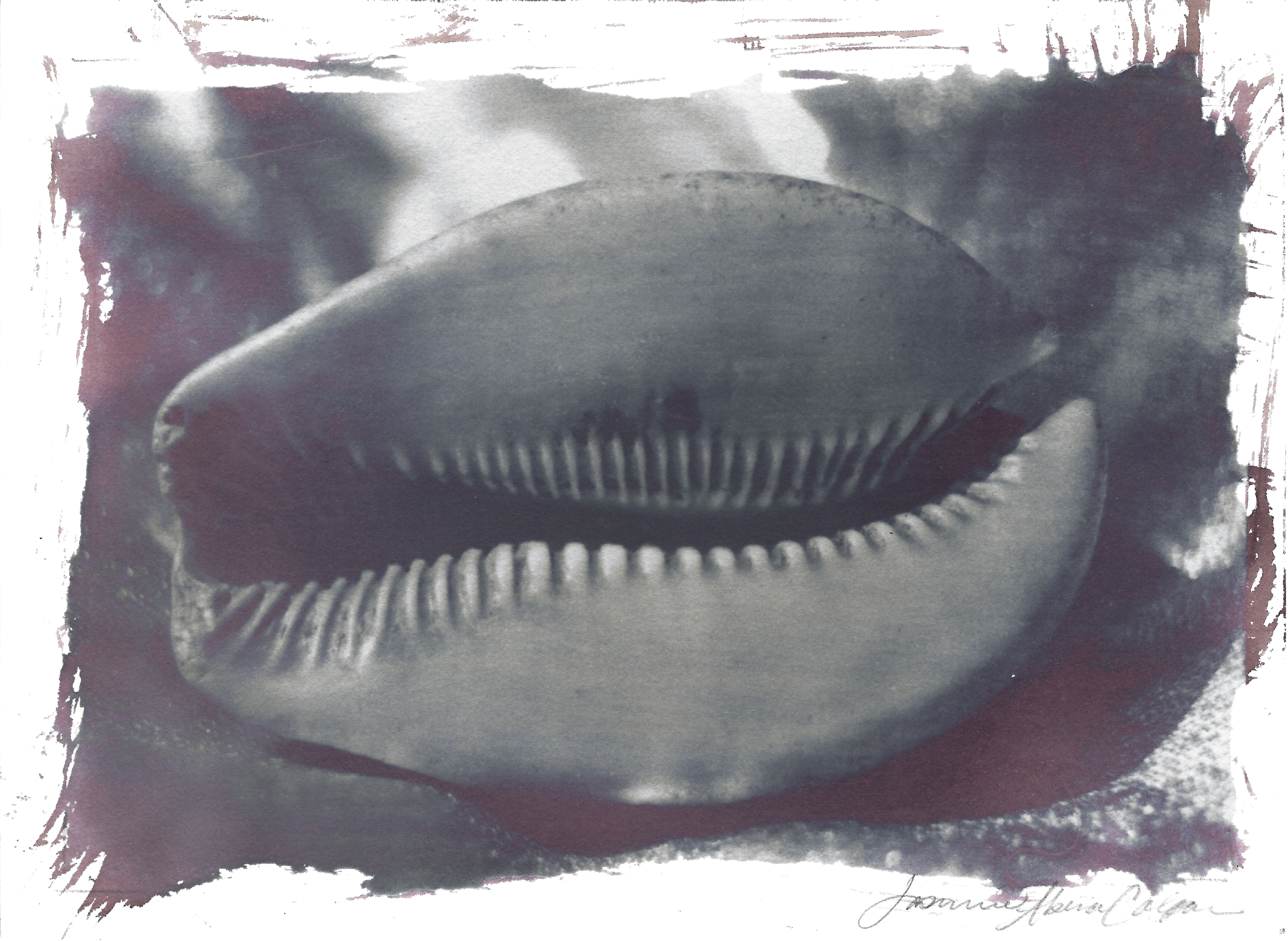 The materials she sources to create her work are rich with meaning. Colgan and a chemist developed what she calls the “Ghanatype,” a gold-powder photographic printing method specifically using ore from the Obuasi mine in the Ashanti region of Ghana, a center of the slave trade. In her current show, Human Currency, at Leon Gallery, Colgan focuses on the cowrie shell in an exploration of ingrained bigotry, spiritual feminism and African culture.