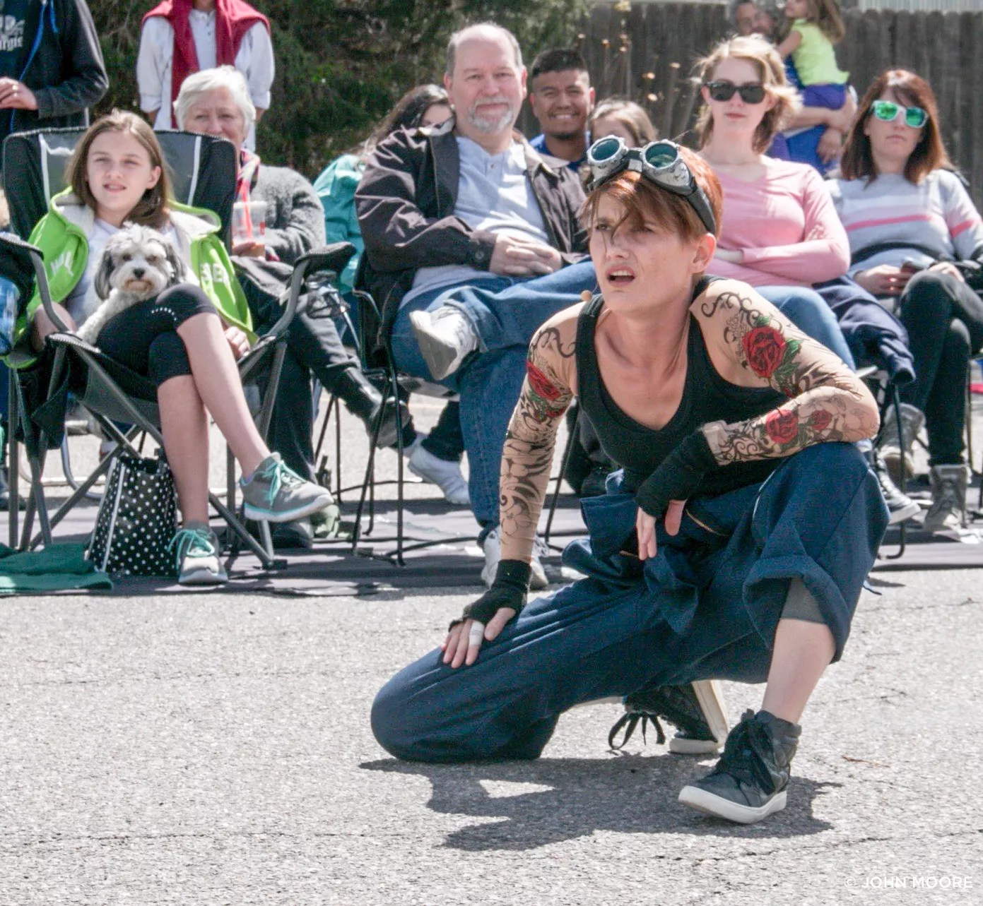 Austgen as Puck in Shakespeare in the Parking Lot’s A Midsummer Night