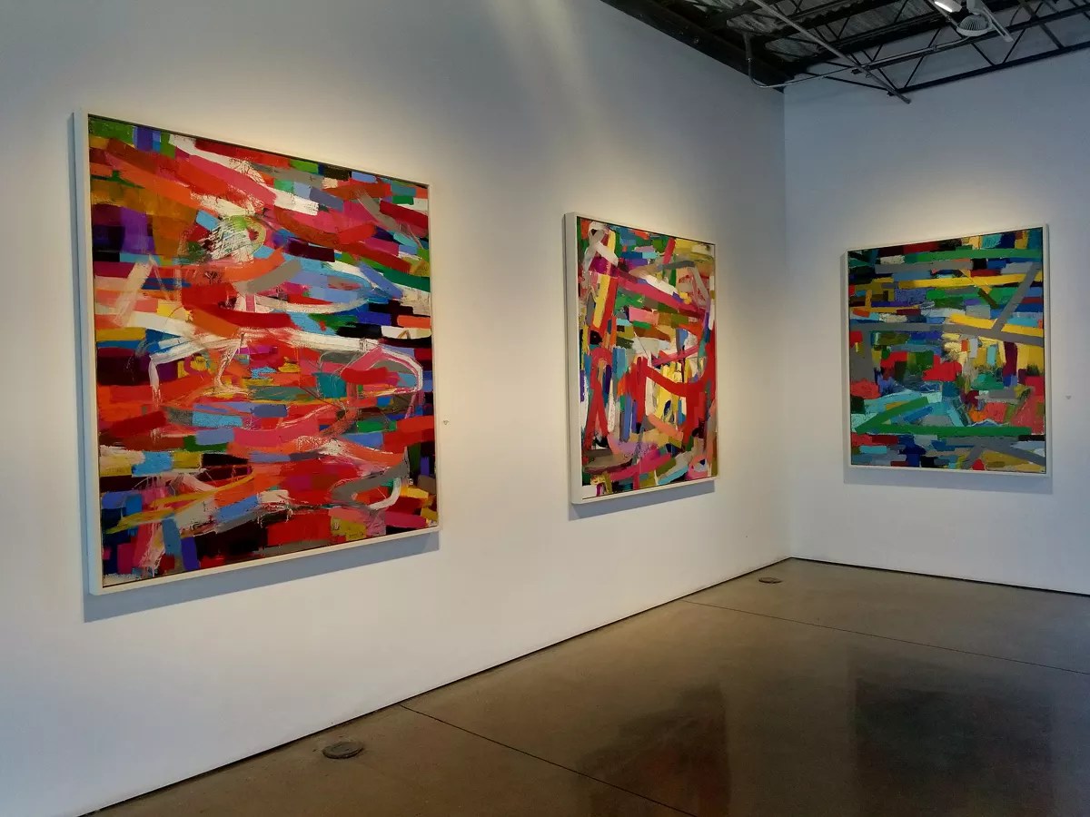 Installation view of Monroe Hodder paintings at Space Gallery.