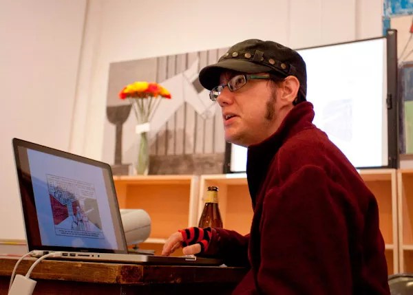 For the past eight years, Lonnie Allen has been best known around Denver as the organizer of Denver Drink and Draw, a weekly gathering of comics artists. But he’s also an accomplished cartoonist in his own right. He’s been published by Image Comics, and his work has been nominated for a prestigious Eisner Award. His long-running webcomic series Delineate was recently collected into a print edition, and he’s a member of DINK’s planning organization as well as the comics editor of Denver’s Suspect Press.