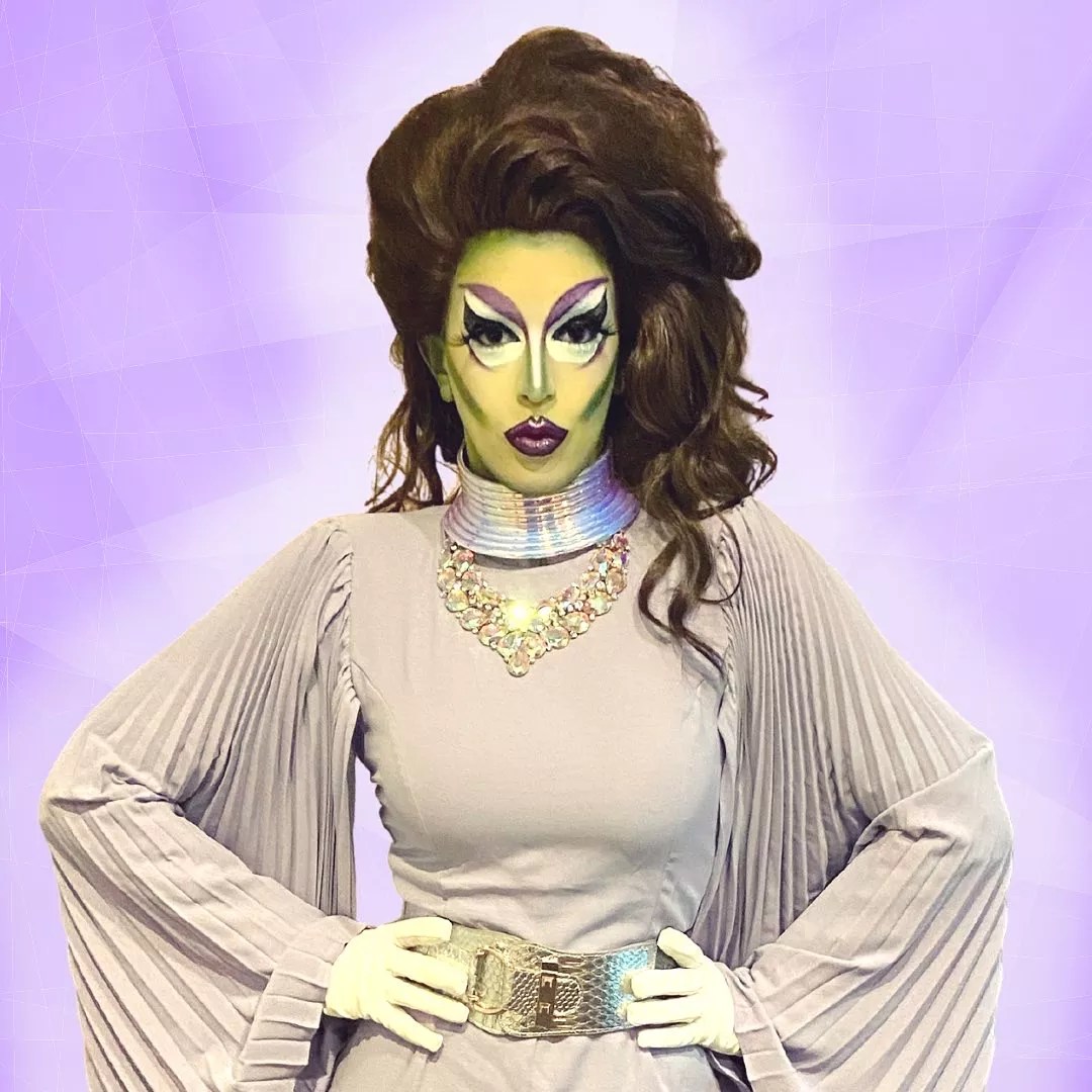Drag style: Aria PettyOne is the Big Green Bitch of the Southwest United States! Crash-landing on Earth many years ago, she was released when all the humans decided to break into Area 51. She made her way to Durango, Colorado, in 2018 and became Durango’s first-ever full-time drag queen. Everything about Aria is larger than life, from her ass to her personality. She was born to entertain a crowd. When it comes to inspiration, Aria has to thank Denver’s own Yvie Oddly! Her mantra of “You have to be odd to be number one” really inspires Aria to always be herself and trust her gut when it comes to her art.
