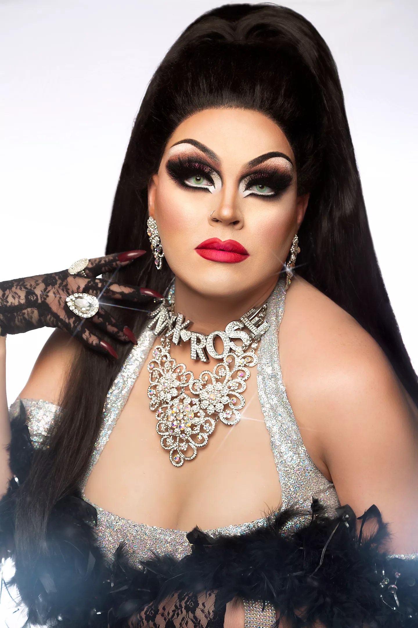 Drag style: Onyx Rose is an edgy glamour queen. Her drag name came from (the metal) onyx, because she loves leather and lace and metal music, but also loves glamour and beauty, which symbolizes her last name, ‘Rose.’