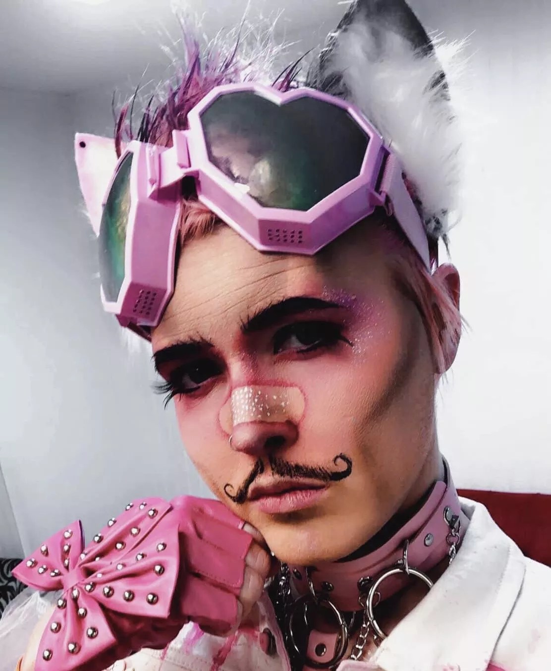Drag style: Sin is both trans and autistic, and wears them on her body at all times with pride. Her drag is definitely marching to the beat of its own drum. She would label drag persona as a party monster, a bright, colorful gremlin with a sugar high from Pixy Stix! She pulls inspiration from many places for her drag, from pantomimes all the way to video games and anime characters, ’80s and ’90s horror films and sci-fi. Sin has been in the world of ballroom for a little over a year now and has eaten up every second of it. She walks for the bizarre category!