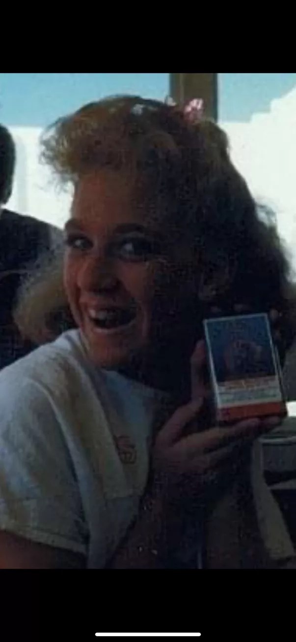 A fifteen-year-old Bushong, proud of her Steve Miller Band cassette tape, in 1988.