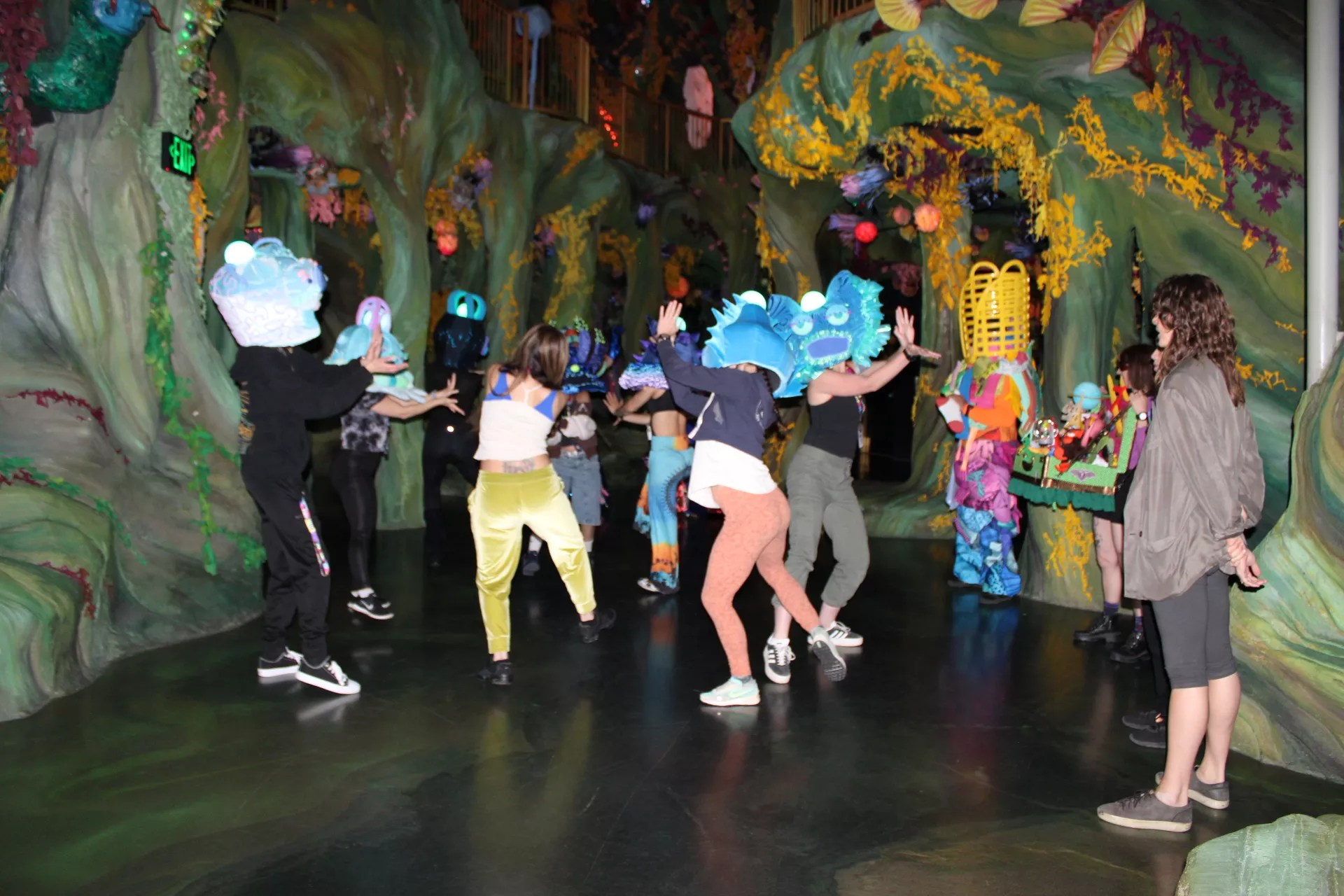 A group of immersive performers rehearses a dance sequence from Phenomenomaly‘s grand finale.