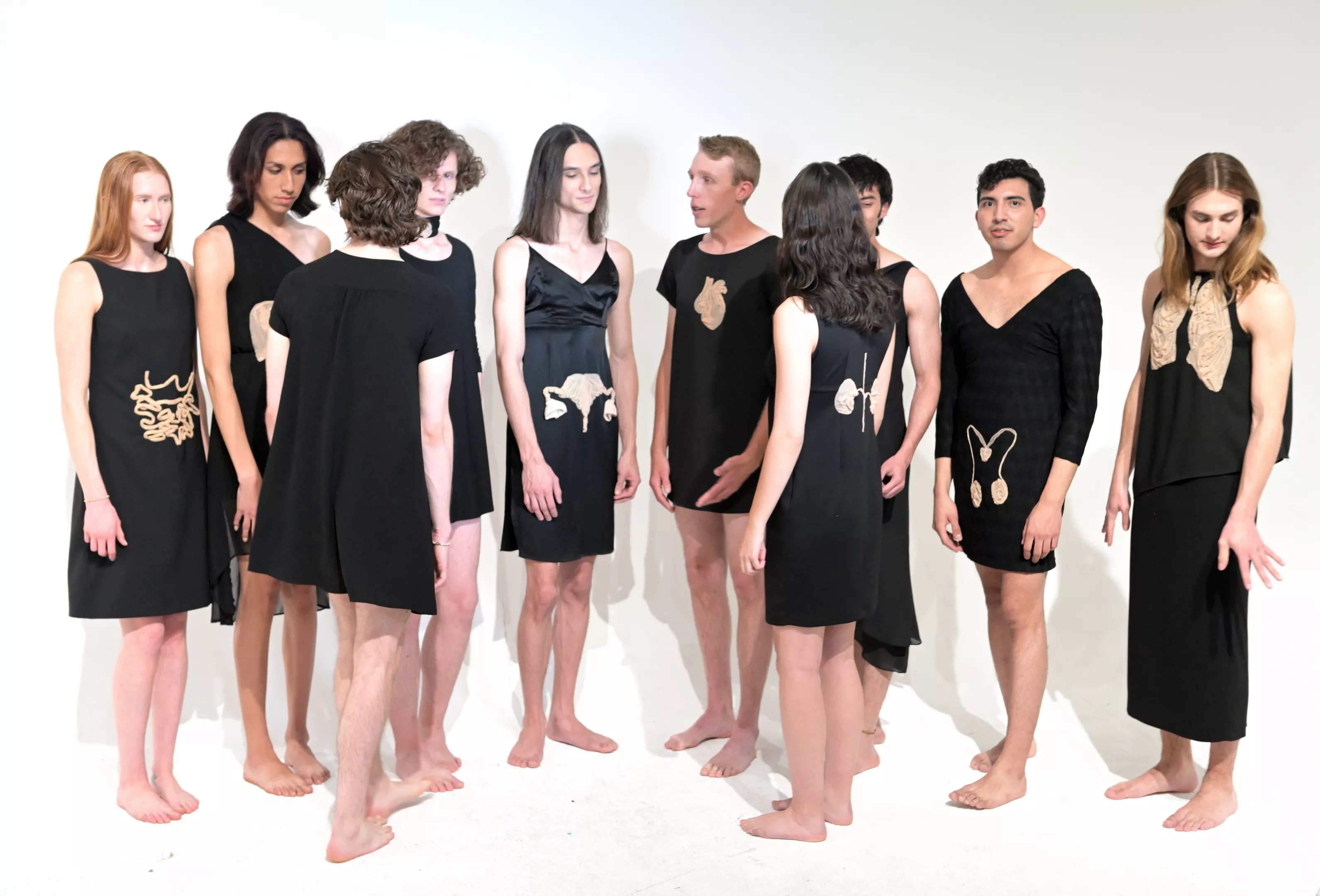 Such sentiments were echoed in a Marginal collection that featured nylon appliqués, crafted to look like human organs as a metaphor for the beauty inside. “People are so focused on being beautiful on the outside,” she says. “They forget that what is inside you is more important.”