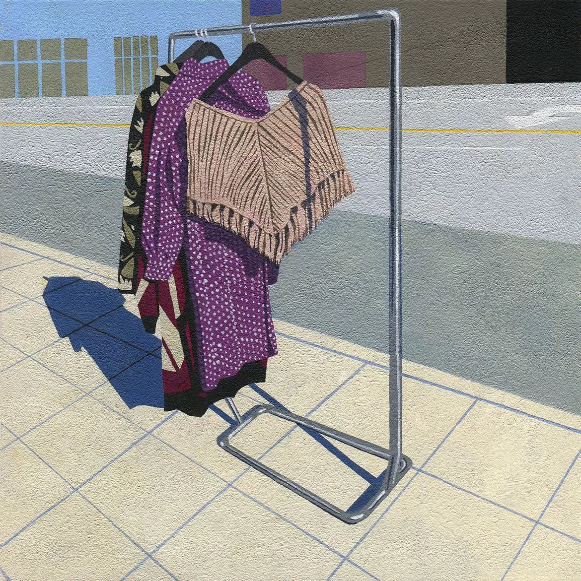 The mood shifts considerably in the intimate passage gallery just beyond the Dvorak section, where Drought: New Works by Elizabeth Ferrill has been installed. Ferrill was formerly associated with the Anderson Ranch Arts Center in Snowmass. Her specialty is an almost archaic printmaking technique called pochoir, in which ink is pushed through stencils. Ferrill is a master of this unwieldy method, and the resulting works on paper have an almost photographic crispness. For subject matter, Ferrill goes with such mundane objects as a sewer grate or a rack of clothes. Although the drought of the title is not conveyed by any of these images, they do communicate the idea of a heat wave through the strong contrasts and lit-up colors.