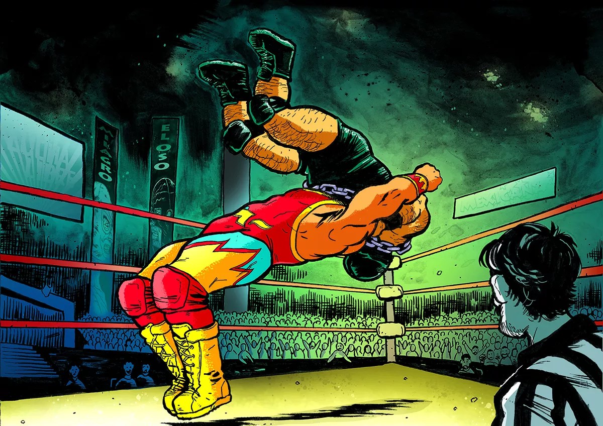 Milagro is not a wrestling comic, says Strackbein, though he and his collaborators went to great lengths to make the fight scenes in the book as accurate as possible. Xegarra learned how to wrestle in the interest of authentically depicting the sport.