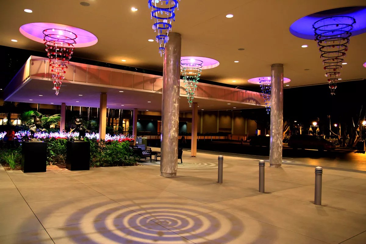 Disney Hotel exhibit with Modern Christmas Trees.