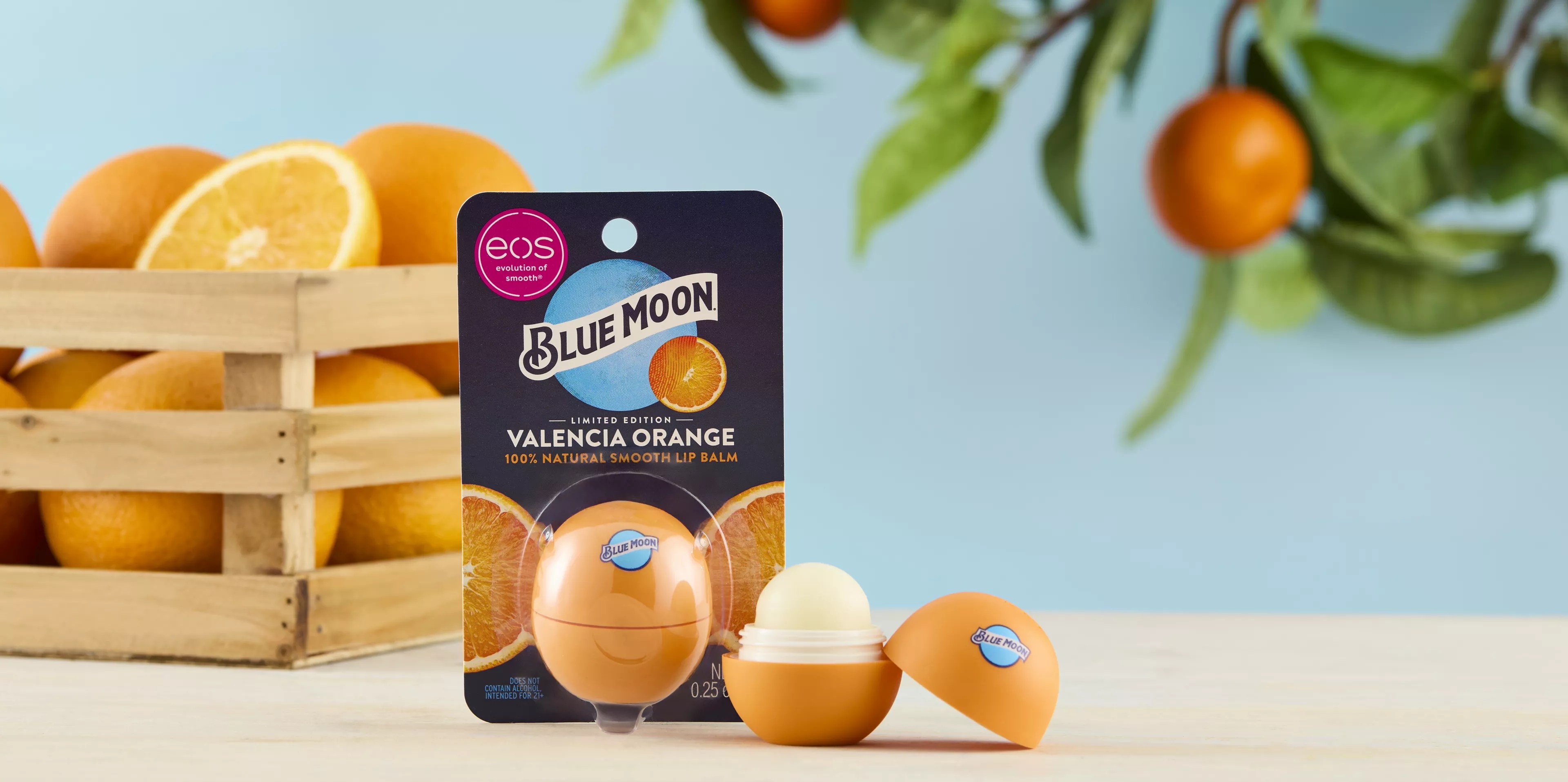 The limited-edition “Blue Moon x eos Valencia Orange Lip Balm” was released Wednesday, June 11 and is available for purchase online.