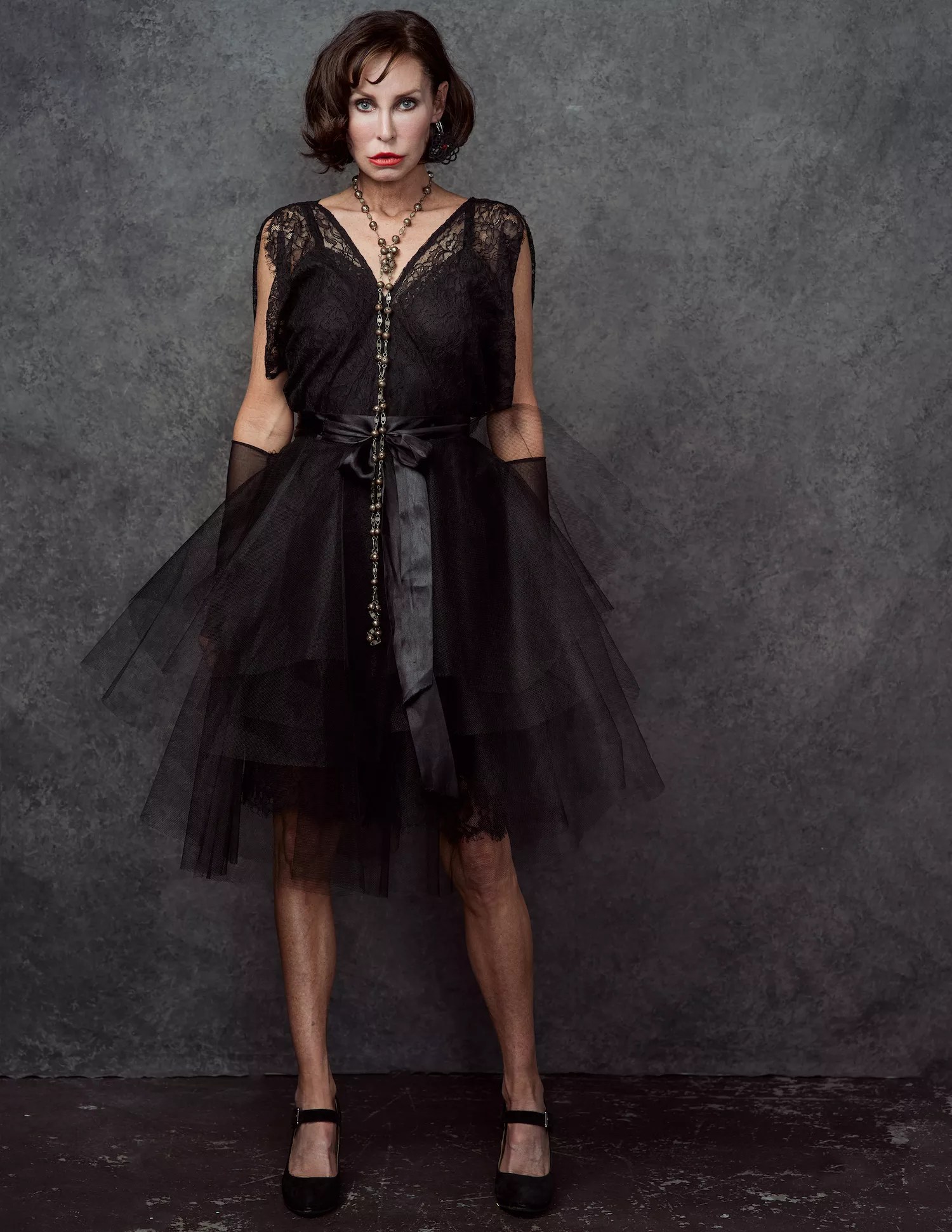 Mona Lucero goes dark and sexy for a black tulle party frock.