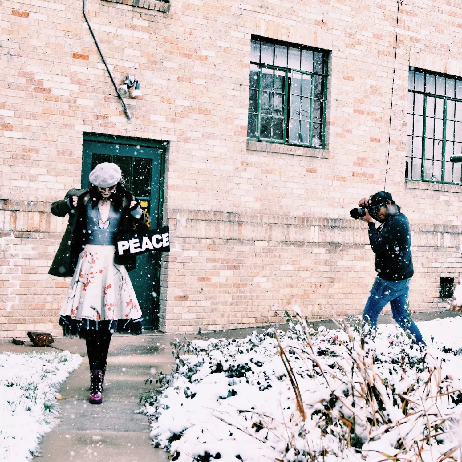 Model Karli Isabella Stunkel ventures out in the snow for a Mona Lucero photo shoot.