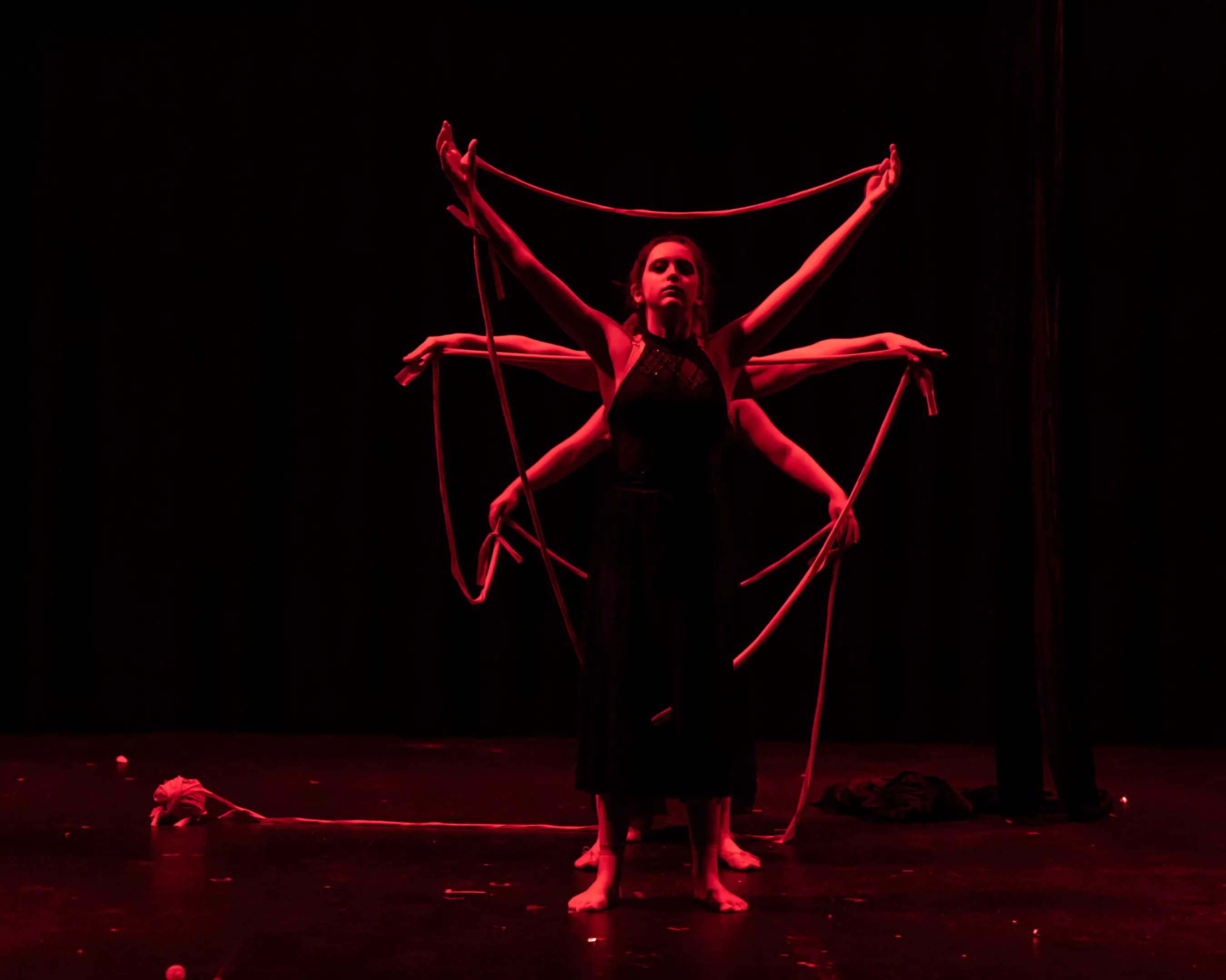A performer uses ropes to convey emotions and help tell the story in a production by Soul Penny Circus.