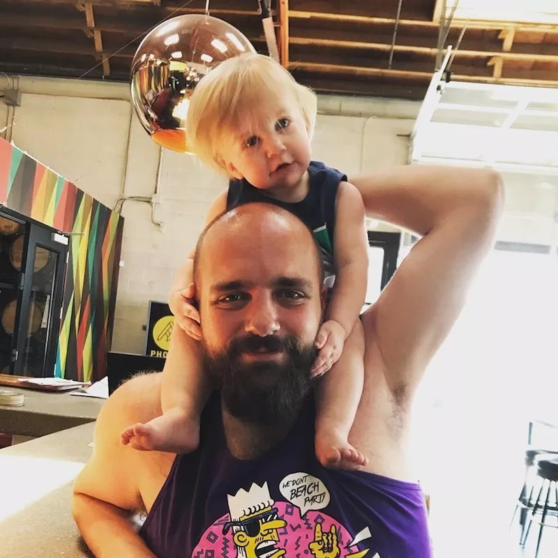 Outgoing Mutiny Transmissions engineer Cory Helie and his baby boy, Rev.