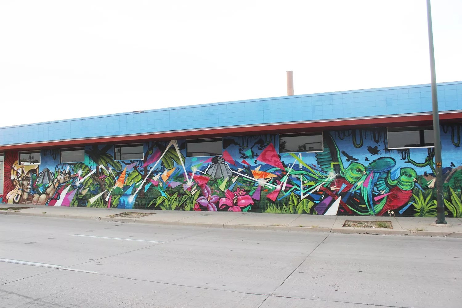 Isely learned of Sok through local rapper and health-food activist DJ Cavem, who worked with Natural Grocers in 2016 to make a music video for a healthy-eating campaign. Cavem wanted to feature art in the video and recommended Sok, who created the first mural on the Natural Grocers store at 3825 Tennyson Street. “Tennyson was our first try,” says Krystal Covington, director of public relations and customer service, “but now we’re hooked.”