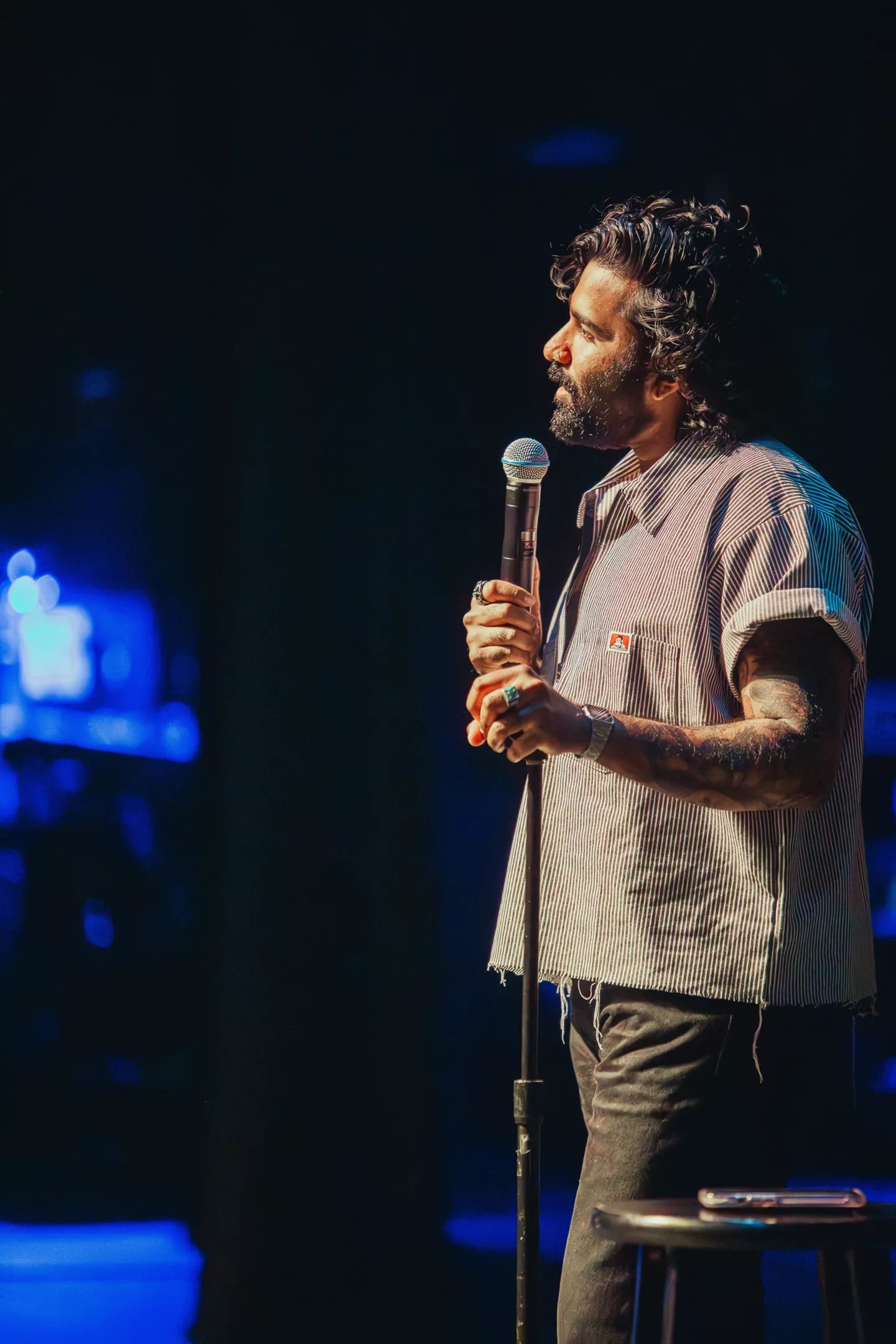 His rescue dog, Sméagol, has been by his side for his comedy career. “I adopted him ten years ago in October,” Sharad says. “When I started doing open mics, he used to be onstage with me. He’s coming on the road with me this year. When I go to, like, Chicago, I’m just going to bring him with me and spend a week out there. But, yeah, it’s been interesting because I started comedy, and he was there. My animals have kind of a big part in my comedy.”