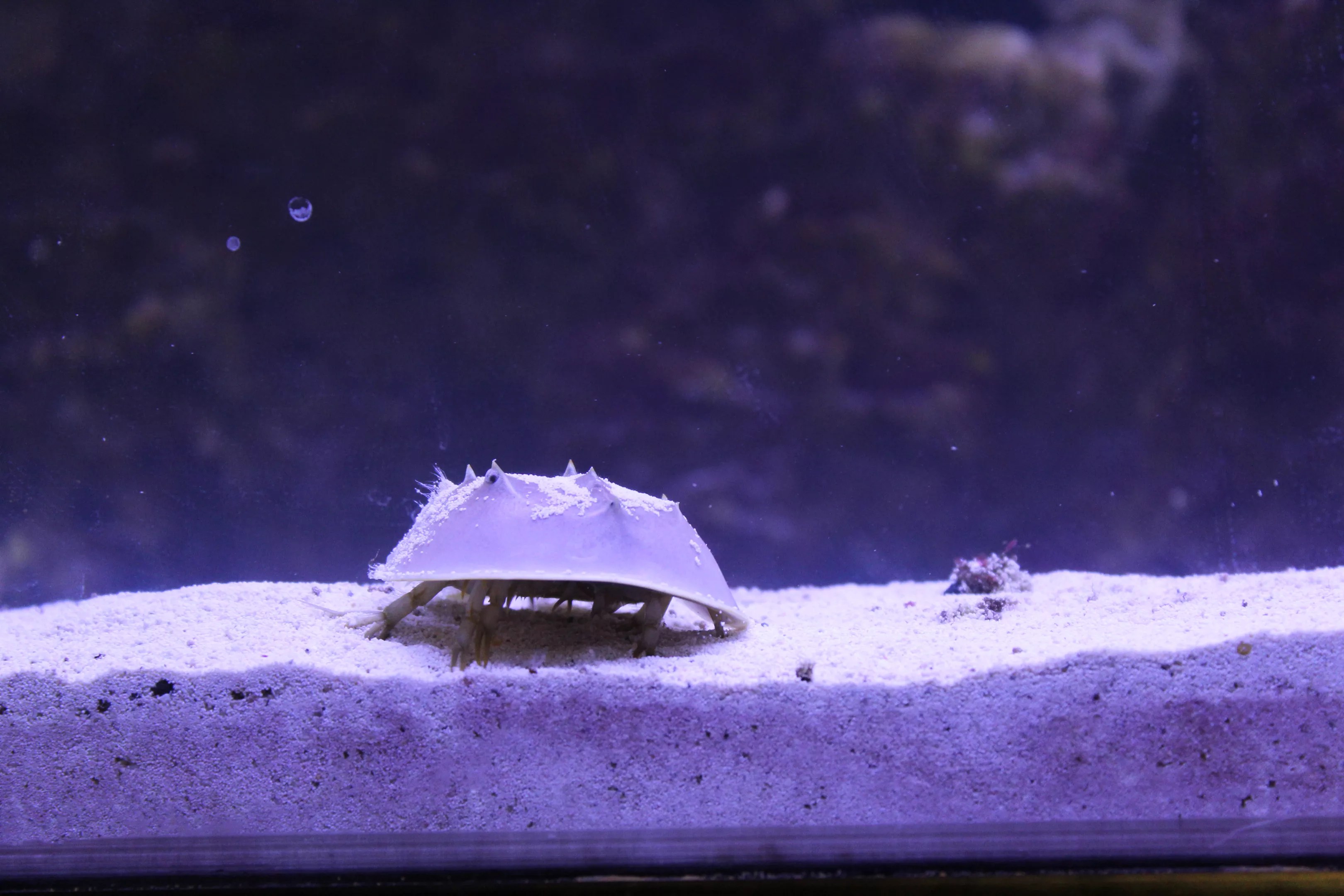 A giant aquatics tank houses urchins, sea stars, a baby slipper lobster and baby horseshoe crabs.
