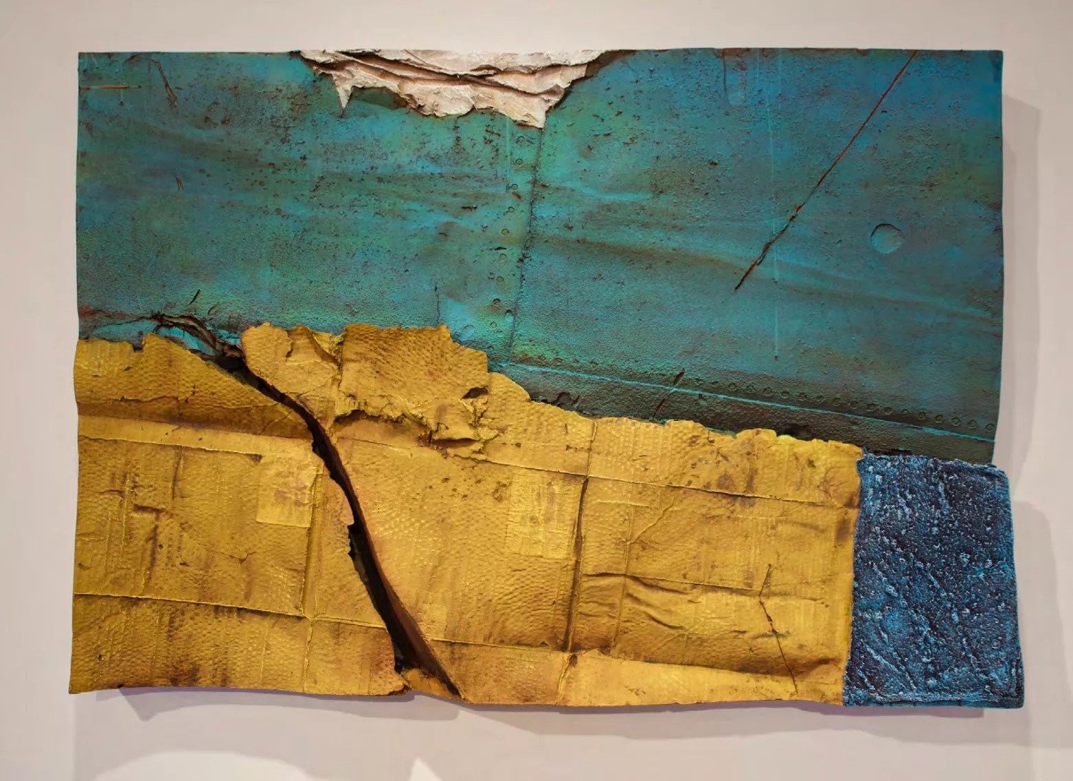 All along Tomasso created abstracts which at first blush resemble paintings, and in fact they are painted, but the pigments he’s applied have not been freely worked and instead follow the contours of the preexisting bas-reliefs in the underlying cast paper. That means that though they appear to be expressionistic and spontaneous, they have actually been meticulously planned and carried out.