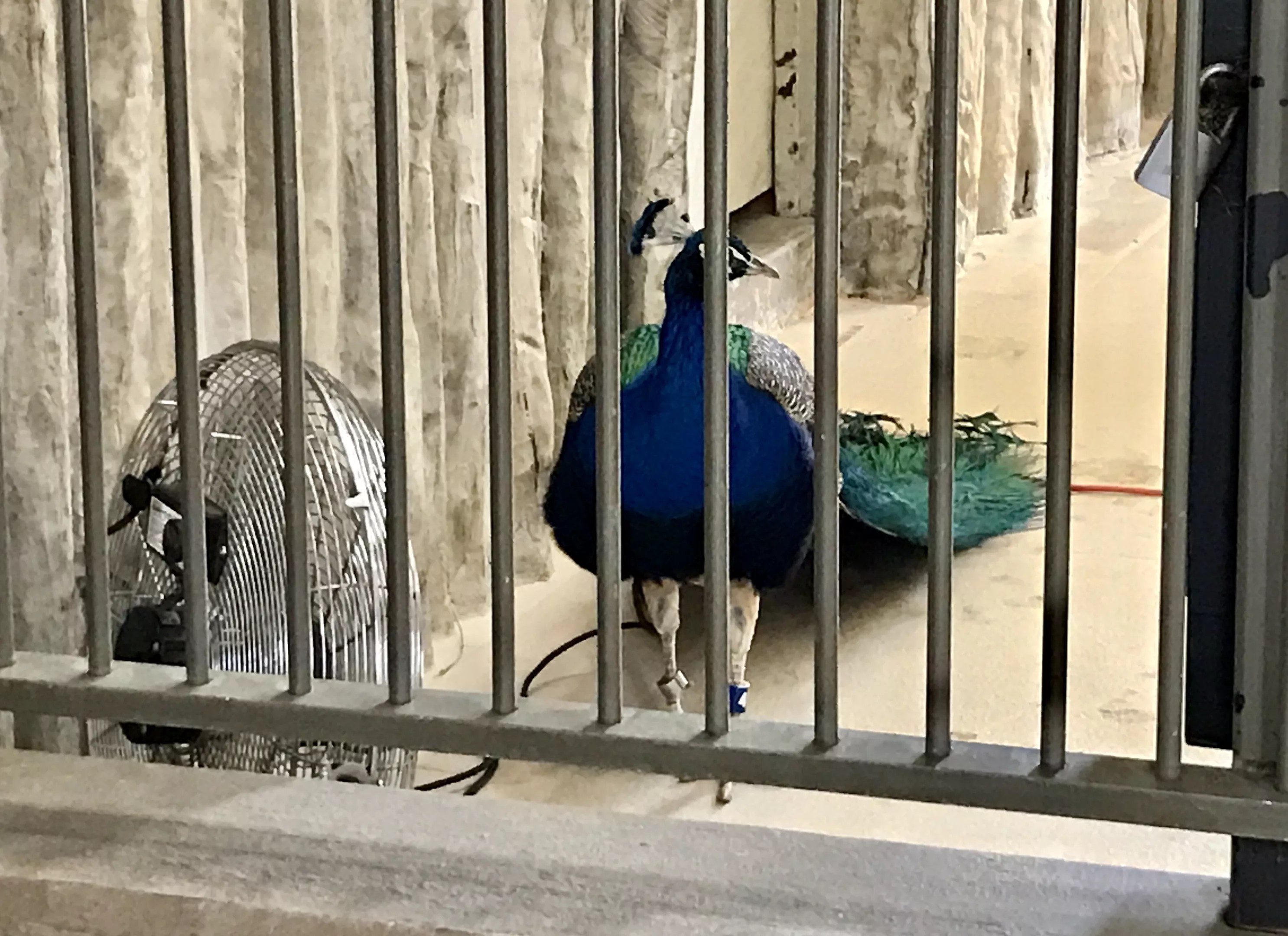 In 2016, the zoo began finding homes at private ranches or facilities for the peafowl. That included Sam, a peacock that had been “adopted” and named by the keepers in the giraffe exhibit, where he liked to hang out, preening near a giant cooling fan.