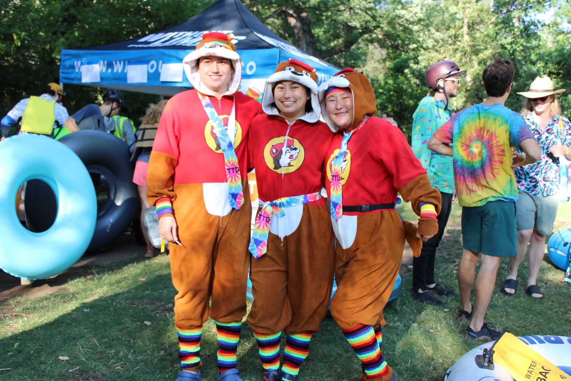 A group of friends stands near their fleet of fox floaties, which won one of this year’s Best Tube awards.