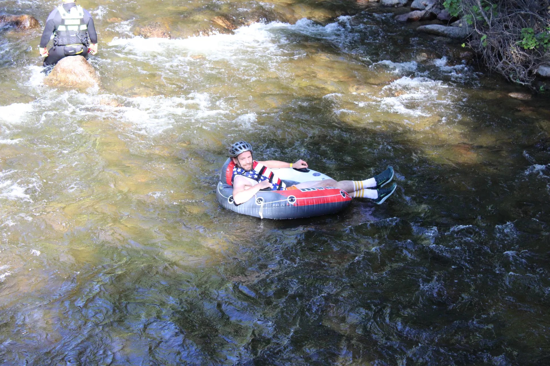 “Let’s give it up for Jeff!” Schuchard said, taking the mic. “Hello, Boulder. I would just like to recognize all of the tubers who have gone before, and our best tubing is ahead.”