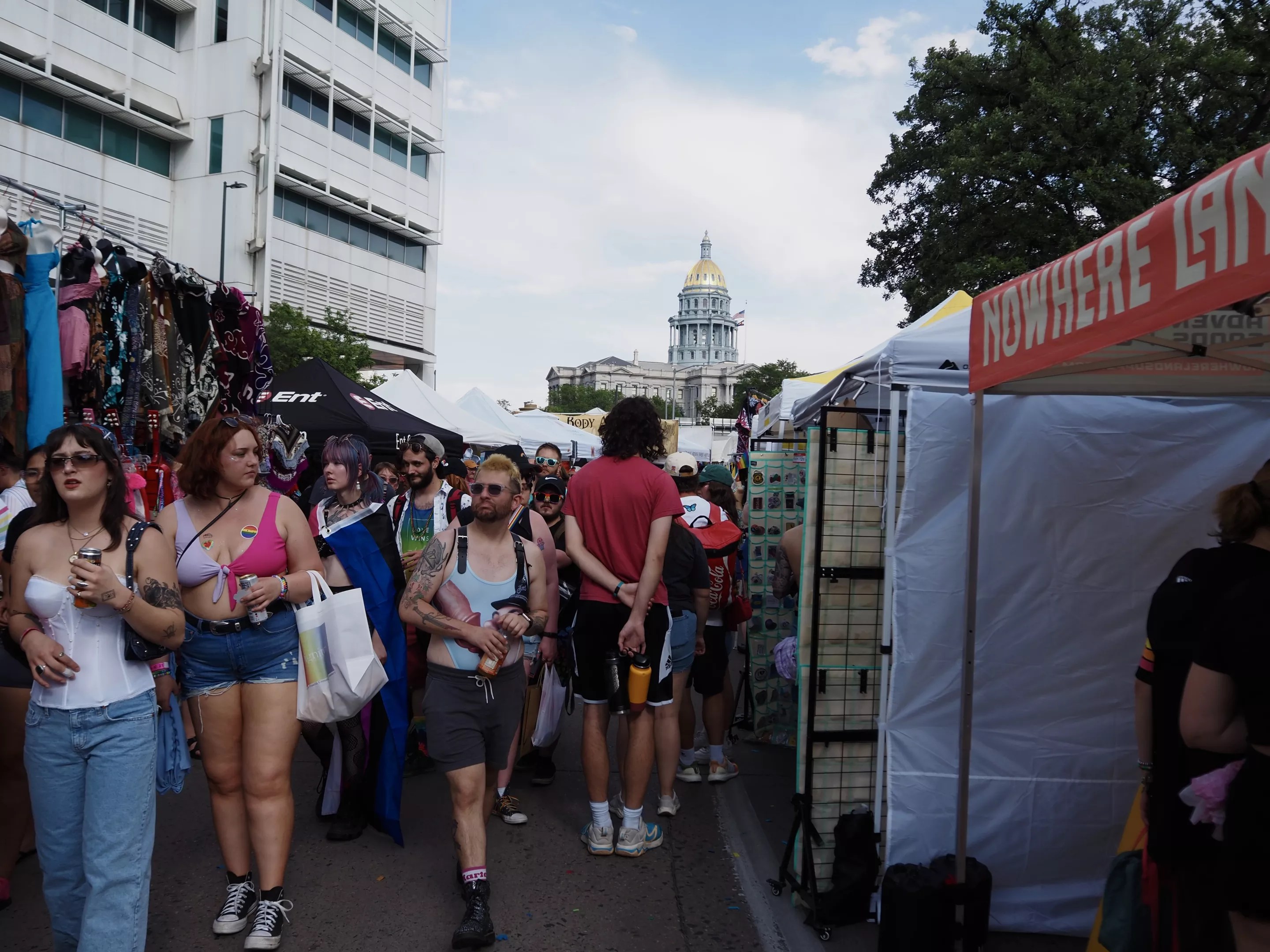 Produced by The Center on Colfax, PrideFest is a major fundraiser for the LGBTQ+ community resource center. While the festival, once a grassroots celebration of queer resistance and joy, has been criticized for its corporatized feel in recent years, plenty of queer joy was still present as people presented authentically to their gender expressions, laughed with their friends in the shade of the trees, complimented each other’s outfits, and danced to queer anthems like Chappell Roan’s “HOT TO GO!”