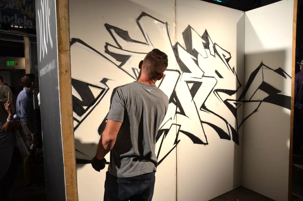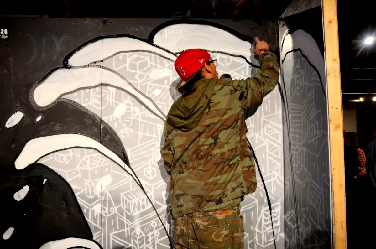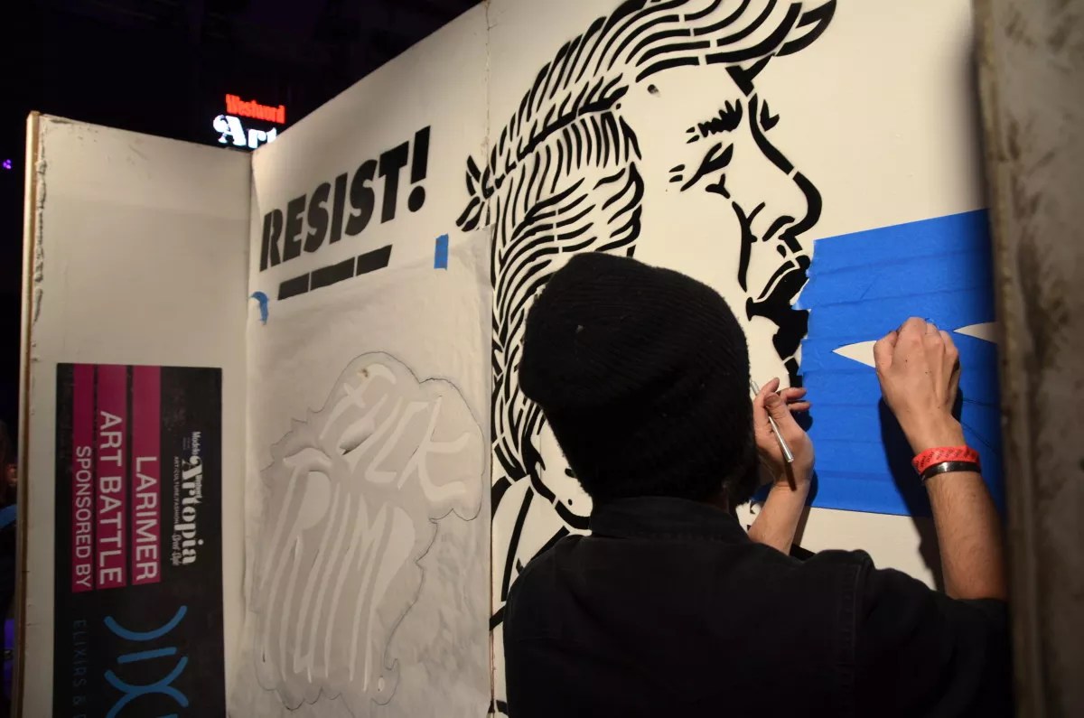 Artopia 2017 was full of amazing performances, but a single scene encompassed the spirit and street-style feel that marked this event on February 25. Immediately after the Whiteout fashion show, the runway in City Hall’s amphitheater was dismantled and the space transformed into a live-painting session space with walls for a handful of the most talented artists in Denver.