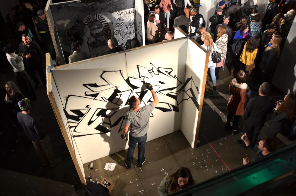 These street and gallery artists were invited to paint a piece on 8×8-foot canvas over the course of one hour and thirty minutes using only black paint. The contest was fun and engaged the audience, and the results were jaw-dropping. View our entire slideshow or the paint-off, and don’t miss the work of winner Casey Kawaguchi.