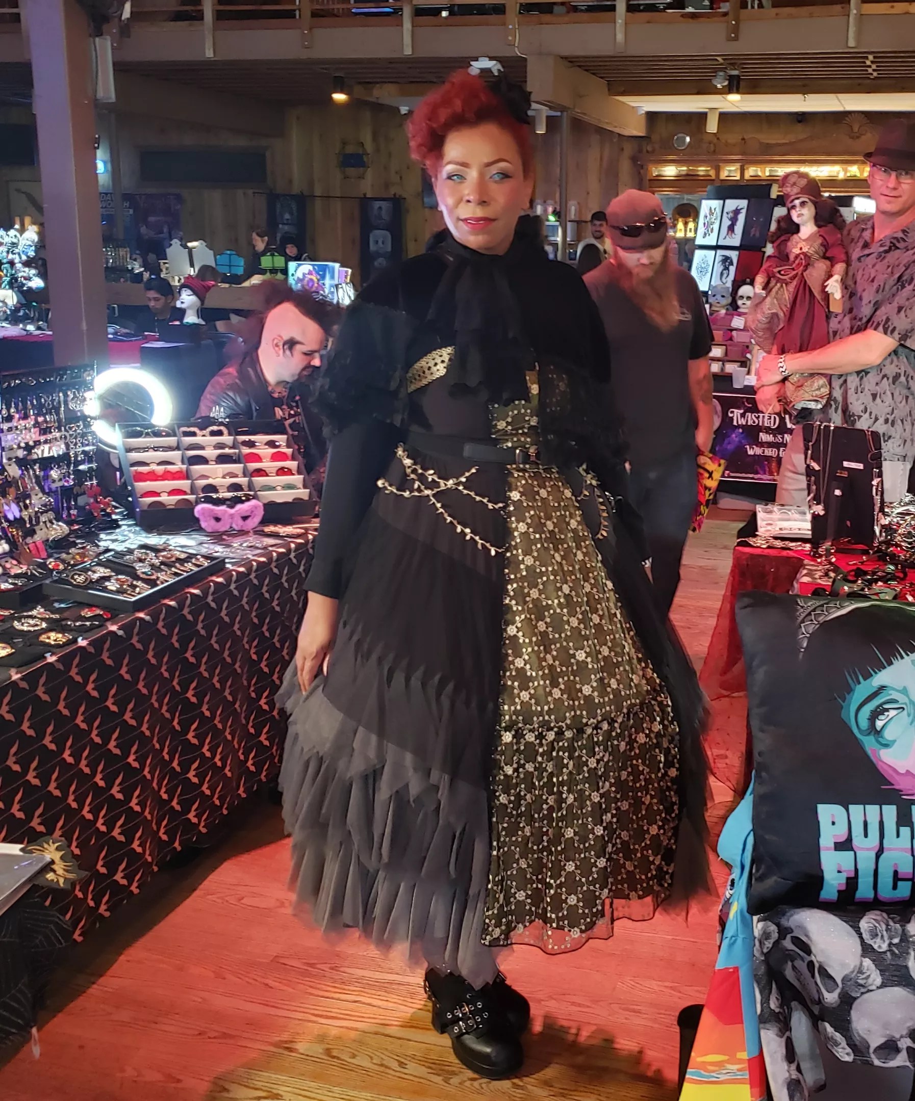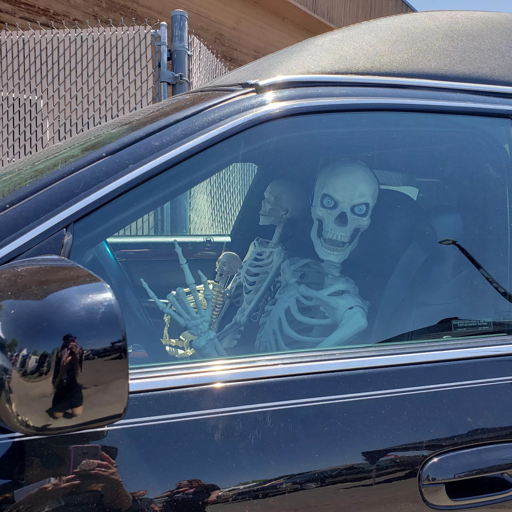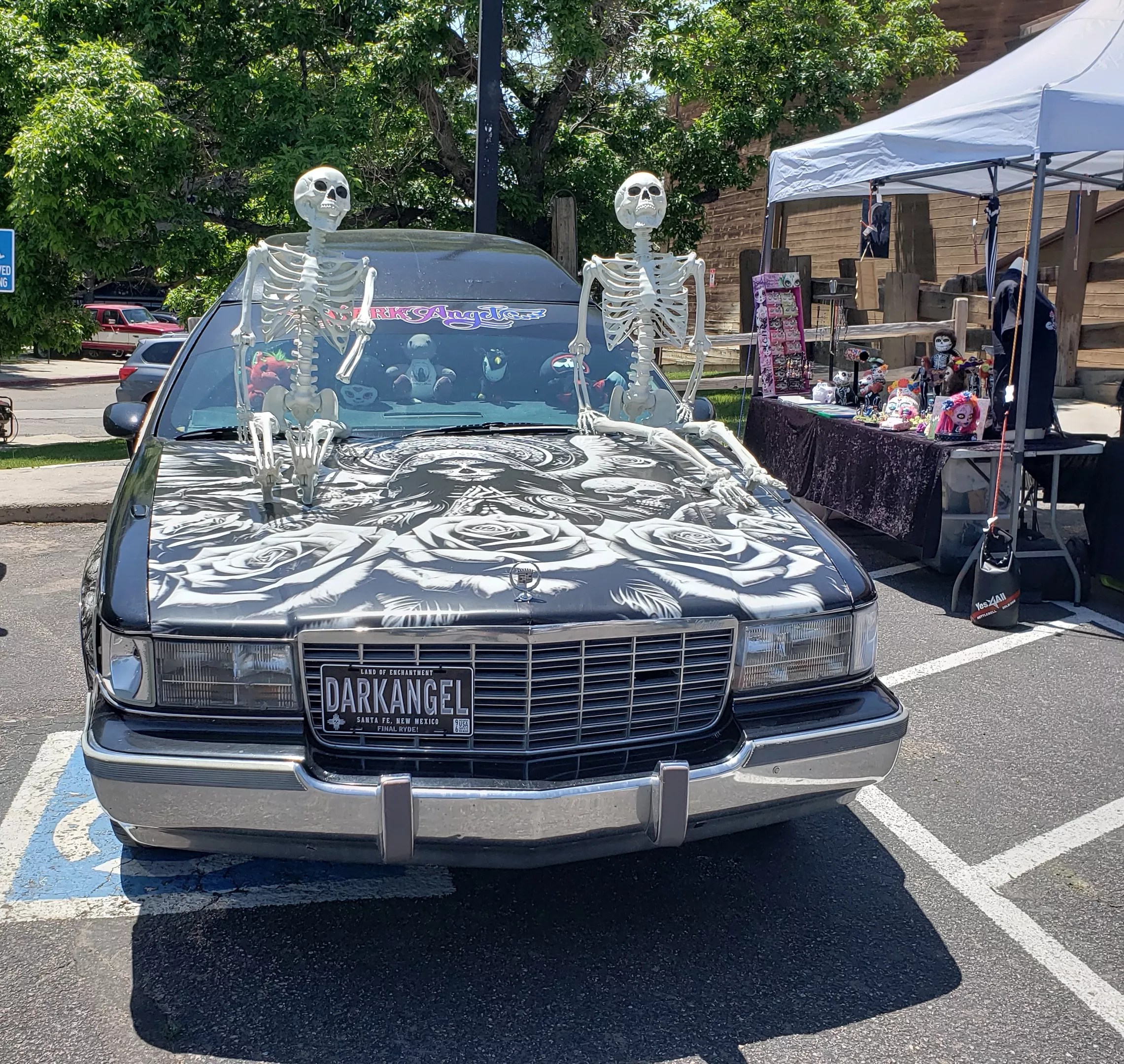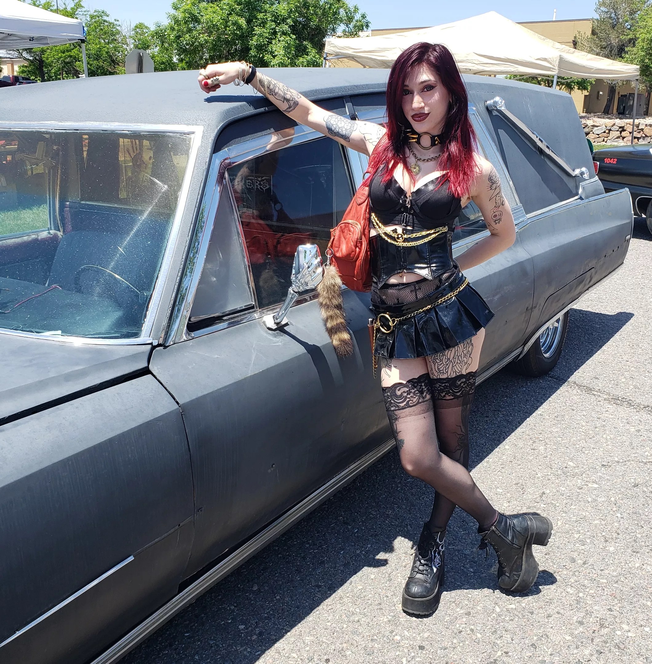 At the main event on Saturday, vendors selling everything from pet water cremation services to dark collectibles, jewelry, and clothing created a maze of shopping options, leading to the lineup of customized hearses. The attention to detail, such as skeleton hand review mirrors and hilarious bumper stickers, made for a photo-worthy event. That, in addition to the people who ranged from those in their goth finest to gear-head car enthusiasts.
