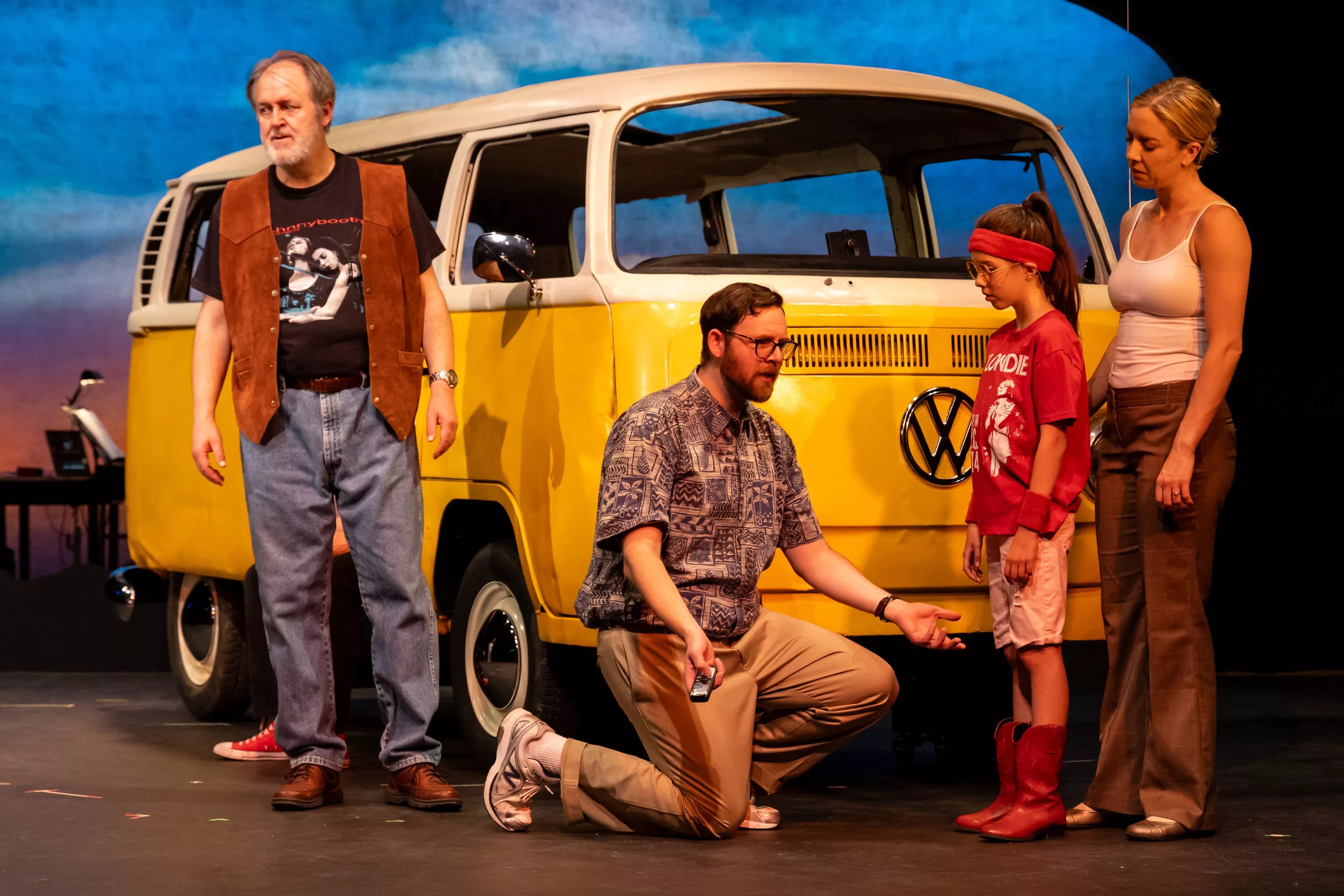 Unfortunately, those same muddled choices extend beyond the script and into the staging. While the production team admirably commits to capturing the visual essence of the film, their realism sometimes works against them, particularly in the show’s most dominant scenic element: the family’s yellow VW van.