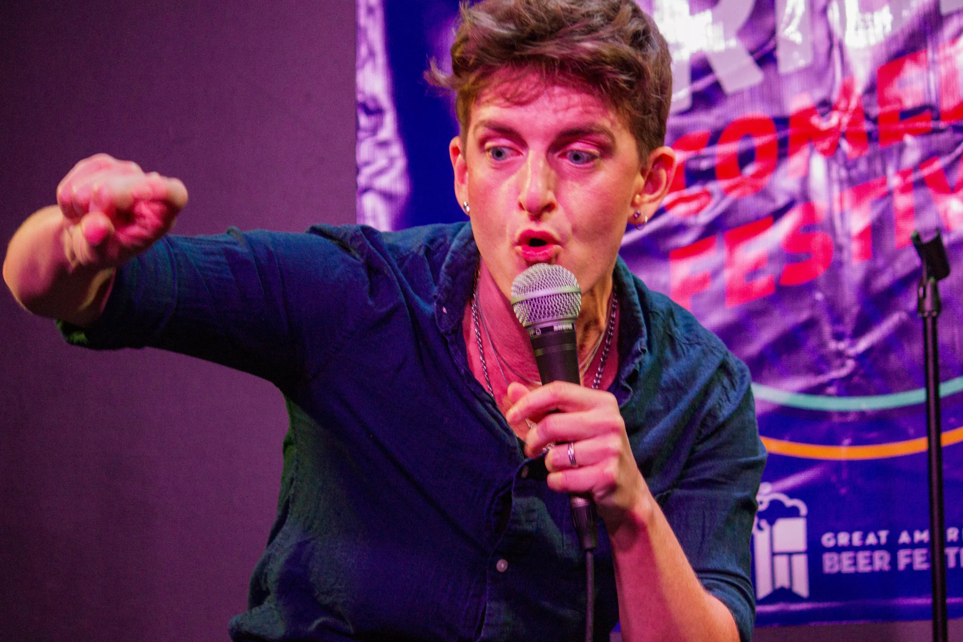 A standup comedian takes the stage at the RISE Comedy Festival.