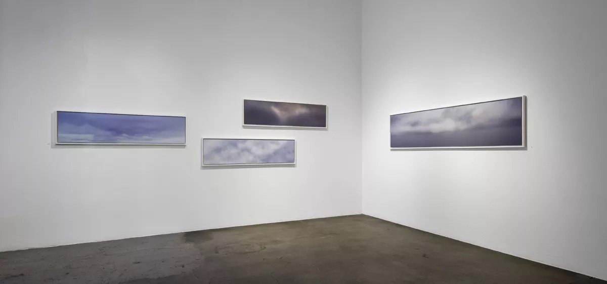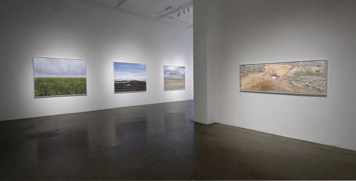 Marking a big change in approach are photos in which O’Connell has left out the horizon line. The “Big River Flat” series comprises untitled close-ups that look down at the ground toward the river bed, or above and across from the river’s elevated banks, undercutting the illusion of vastness. Just as it’s somewhat contrary for O’Connell to turn his back on the mountains to celebrate the plains, it’s also against the grain to eliminate the sky, ordinarily the most beautiful aspect of the depictions of the plains, as he does in “Big River Flat.” But O’Connell focuses on the sky in another series that gave the show its title, “Petrichor,” with pictures of the clouds unmoored from any reference to the land. They are vaporous, all-over abstractions in shades of white, blue and gray. Interestingly, both the “Big River Flat” and “Petrichor” photos have an exaggerated horizontal format; although they do not include any depiction of the horizon, it’s still evoked simply through the shapes of the pictures themselves – a neat trick.