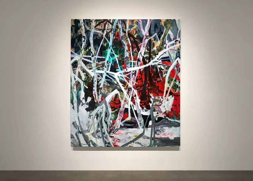 Stepping off the sunny sidewalk and entering the Robischon Gallery on a recent visit was like walking into a shaded forest. The lighting and air-conditioning played their respective roles in making the place darker and cooler, of course, but the impression was sealed by the depictions of trees filling the front space. Those trees are seen in paintings by New York artist Claire Sherman that set a sophisticated tone for Out of View, a wide-ranging group show that also includes photos and videos, all linked by the theme of the natural environment.