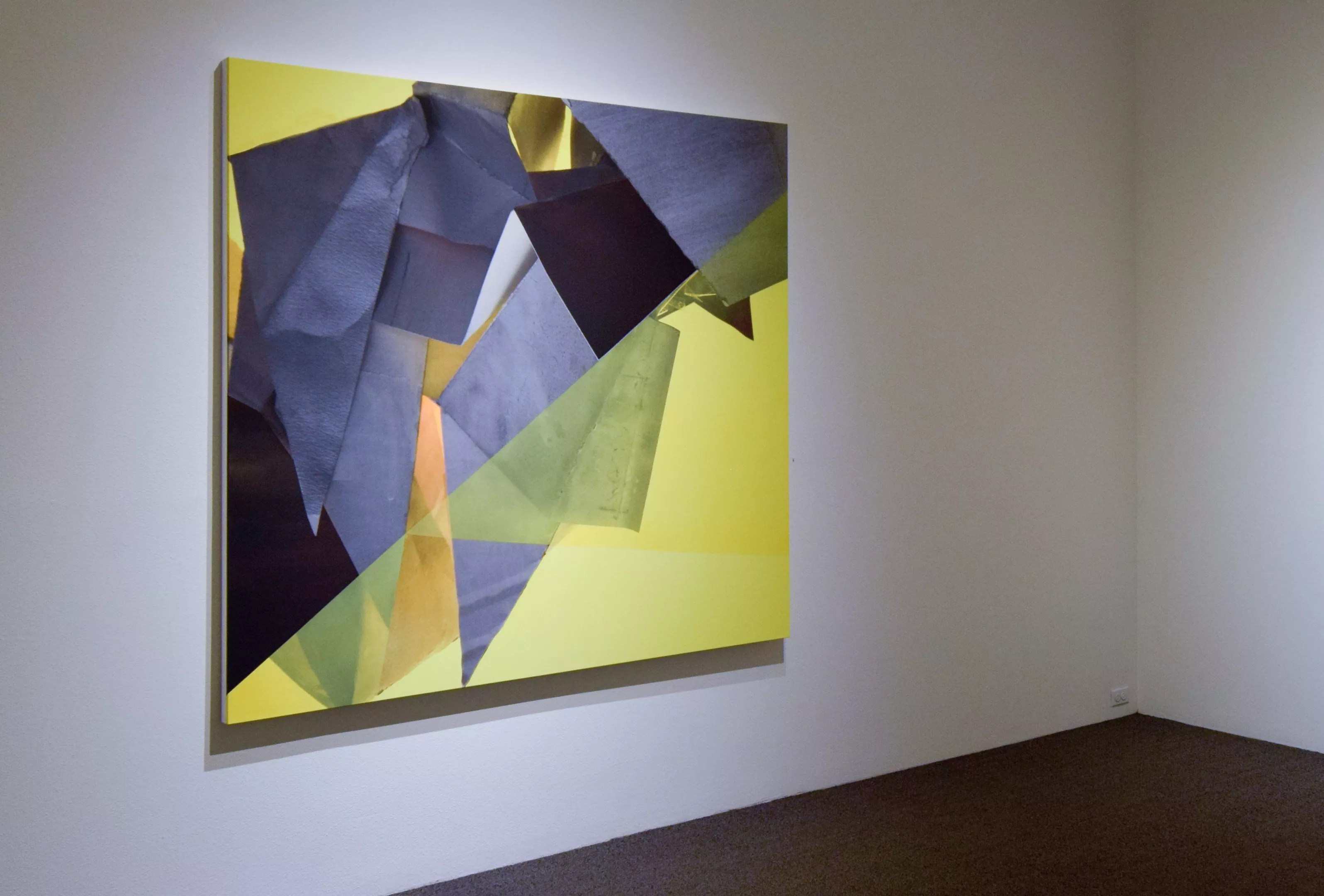 As something of a chaser to these solos, Robischon is also presenting a small duet, Kate Petley & Derrick Velasquez, in the viewing room beyond the main space. Kate Petley and Derrick Velasquez are both well-known Colorado artists, and their work relates to the overriding theme of the Robischon solos. Petley’s hybrid digital print and painting method is concerned with a planar conception of depth expressed through colliding color fields. And, oh, what incredible colors they are, with Petley bravely juxtaposing daring Day-Glo shades with the quietest neutrals imaginable and pulling it off.