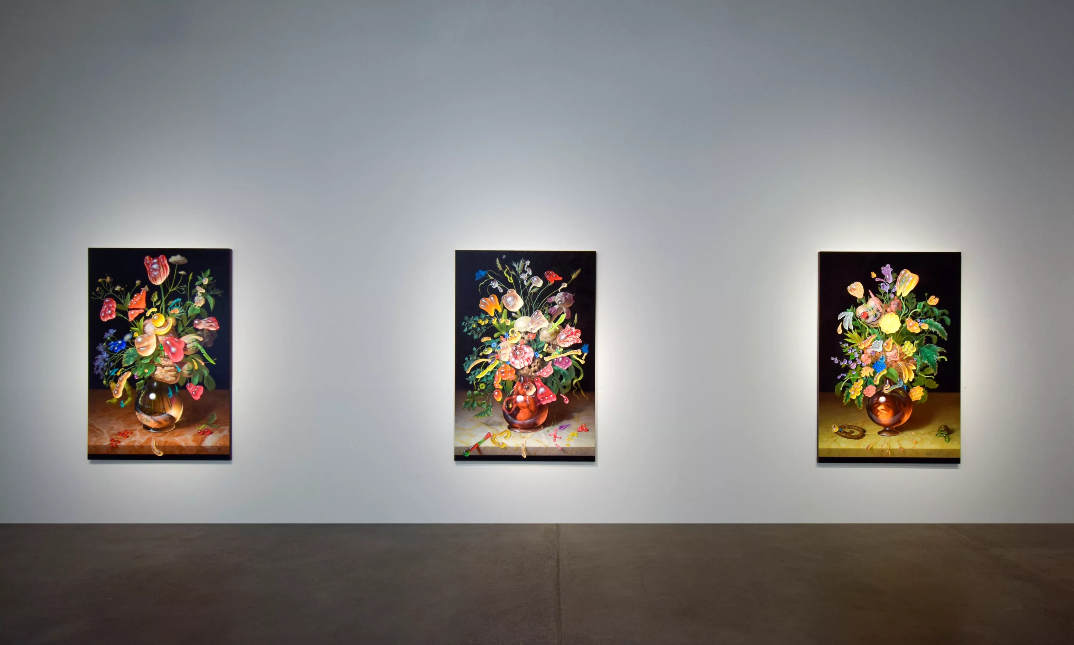 Christian Rex van Minnen’s “Logic Tree” (from left, “Parallax” and “Immanent Maniac Blossoms”).
