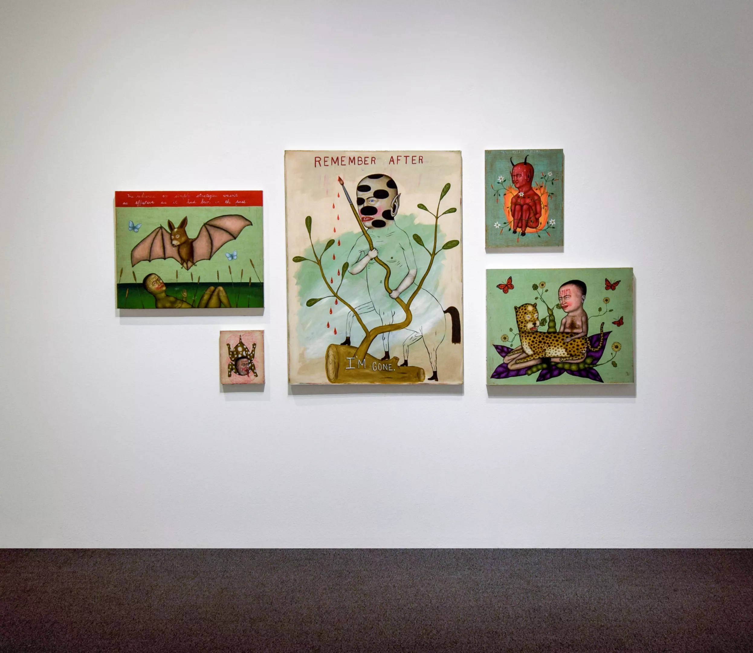 An ineffable quality, rather than anything concrete, connects these Robischon shows. In turn, the five artists employ the grotesque, lay out dreamy parables, arrange funny sight gags, share profundity through whimsy and, finally, are downright weird. Nothing truly unites them, except the way they effortlessly come together at the gallery.