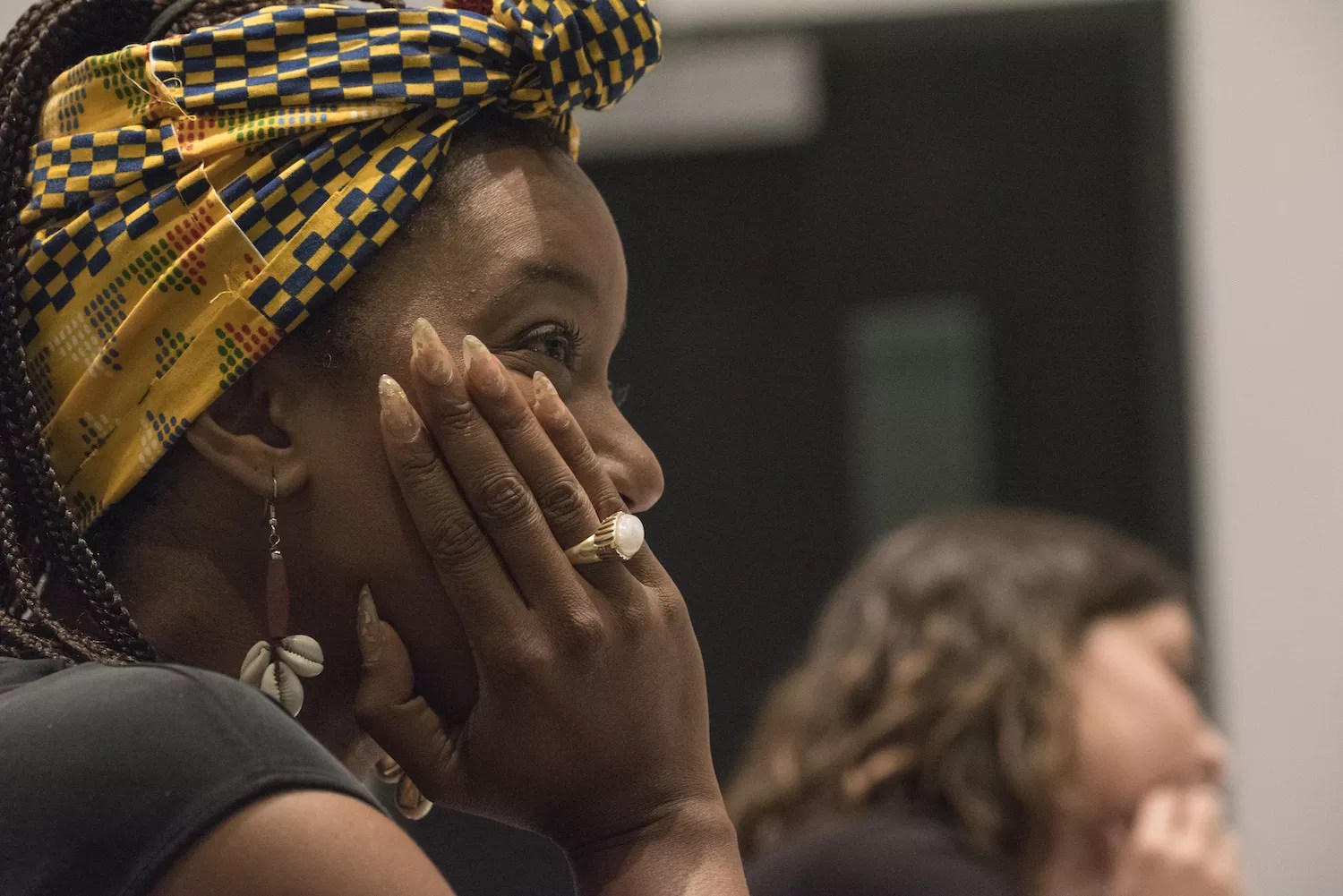 Flame Broiled dramaturge Kristen Adele Calhoun in a rehearsal moment.